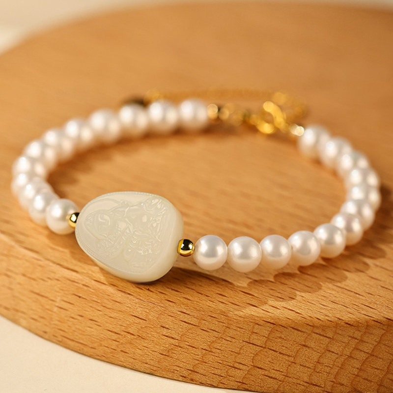 Натуральный браслет из жемчуга, оберег на день рождения из нефрита, амулет, женский стиль
