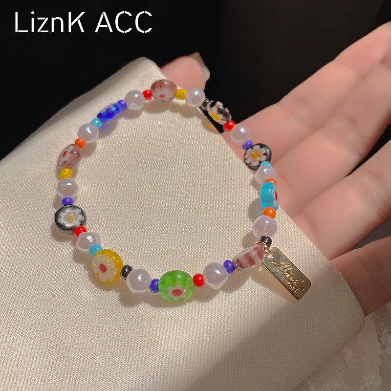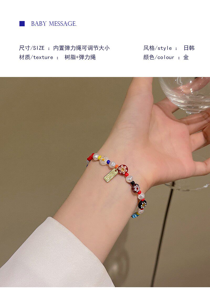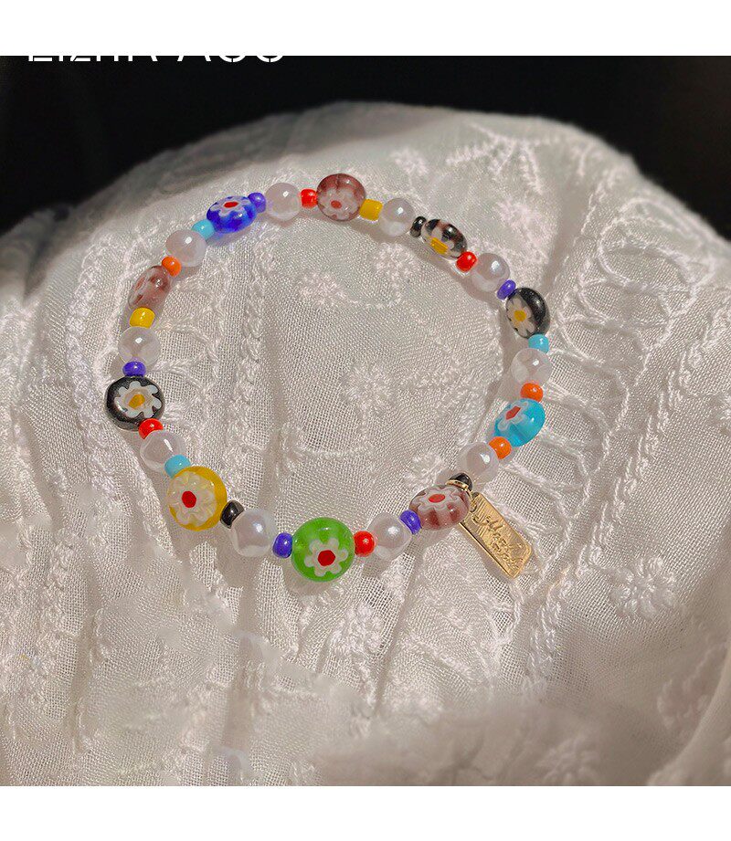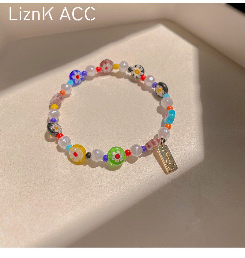 Мультяшный летний свежий дизайнерский браслет из бисера, в цветочек, тренд сезона, популярно в интернете
