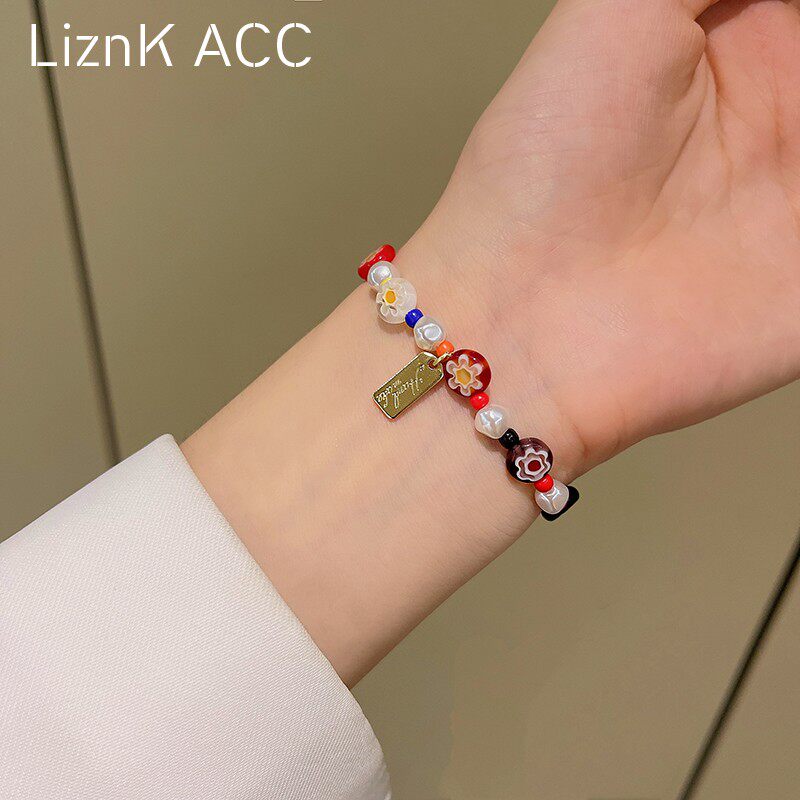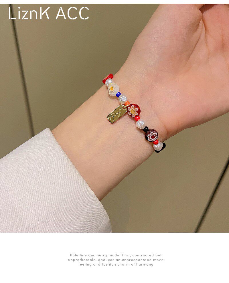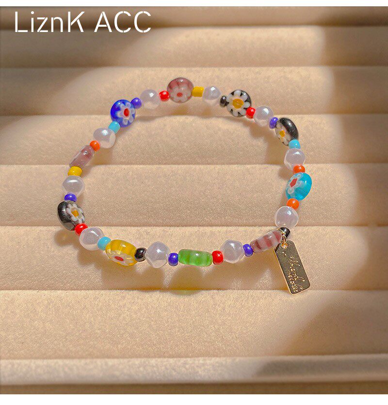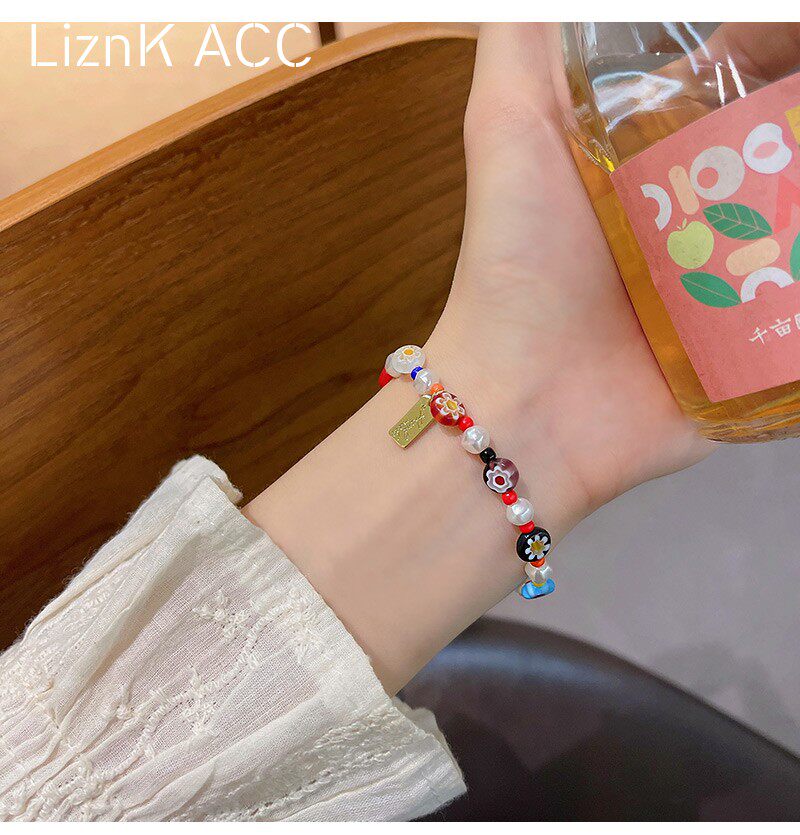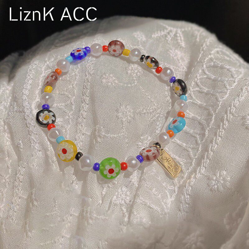 Мультяшный летний свежий дизайнерский браслет из бисера, в цветочек, тренд сезона, популярно в интернете