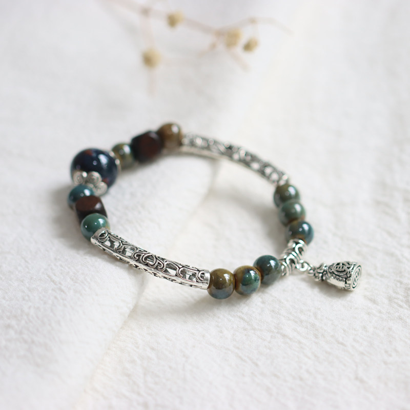 Пыль сумерков, ретро -этнический стиль, новый китайский стиль, керамический браслет Jingdezhen, национальный стиль, браслет из студенческого фарфора 160