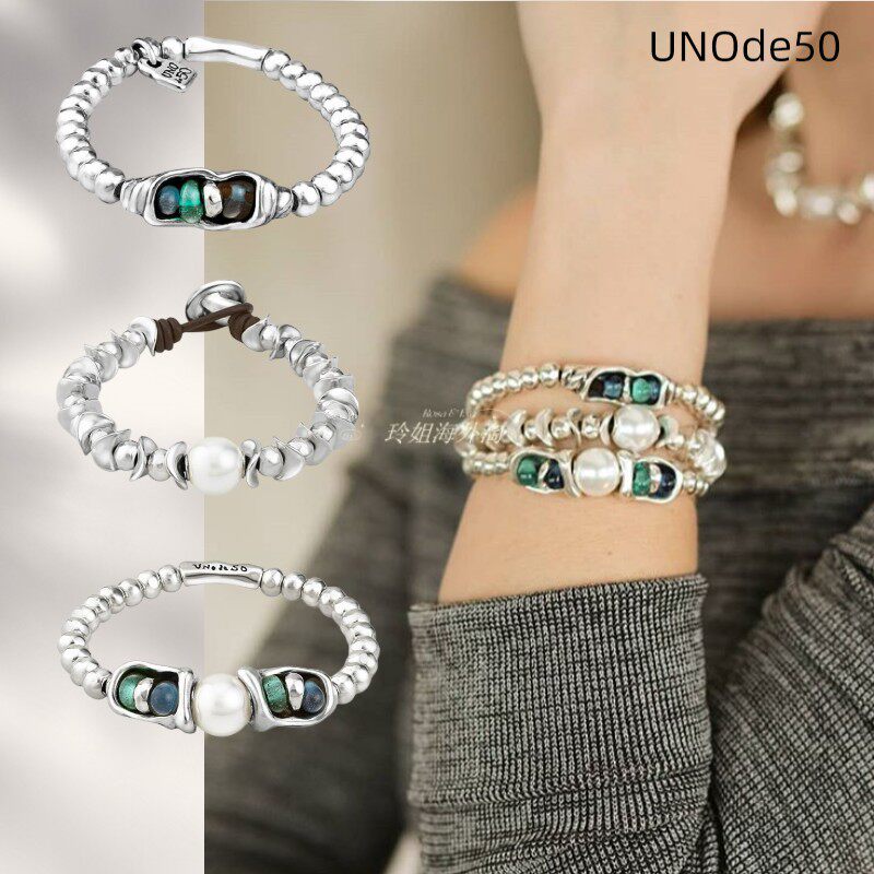 Guoxian, испанский счетчик покупок UNOde50, зеленые бусины ручной работы, европейские и американские легкие роскошные посеребренные женские бусины