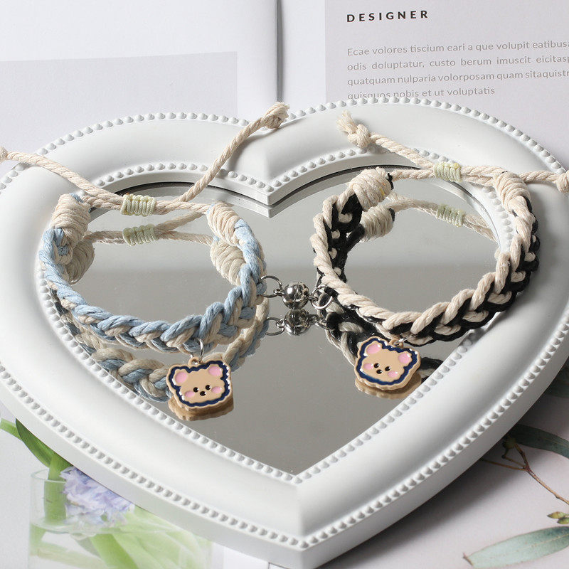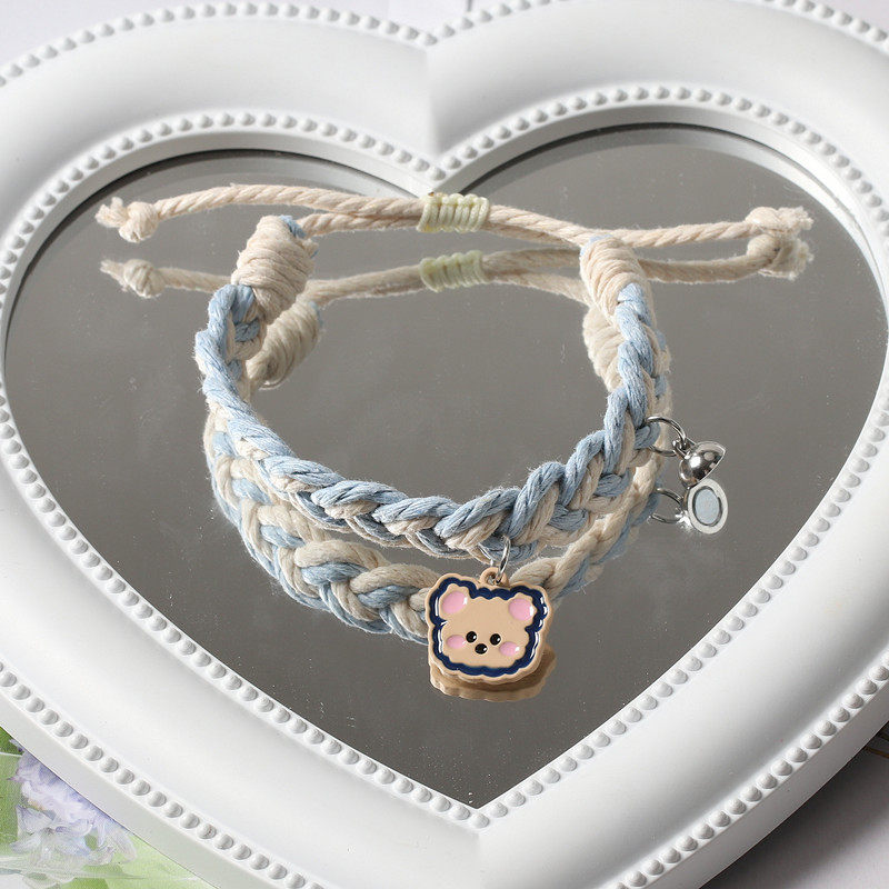 Милый плетеный мультяшный регулируемый свежий браслет для влюбленных, с медвежатами