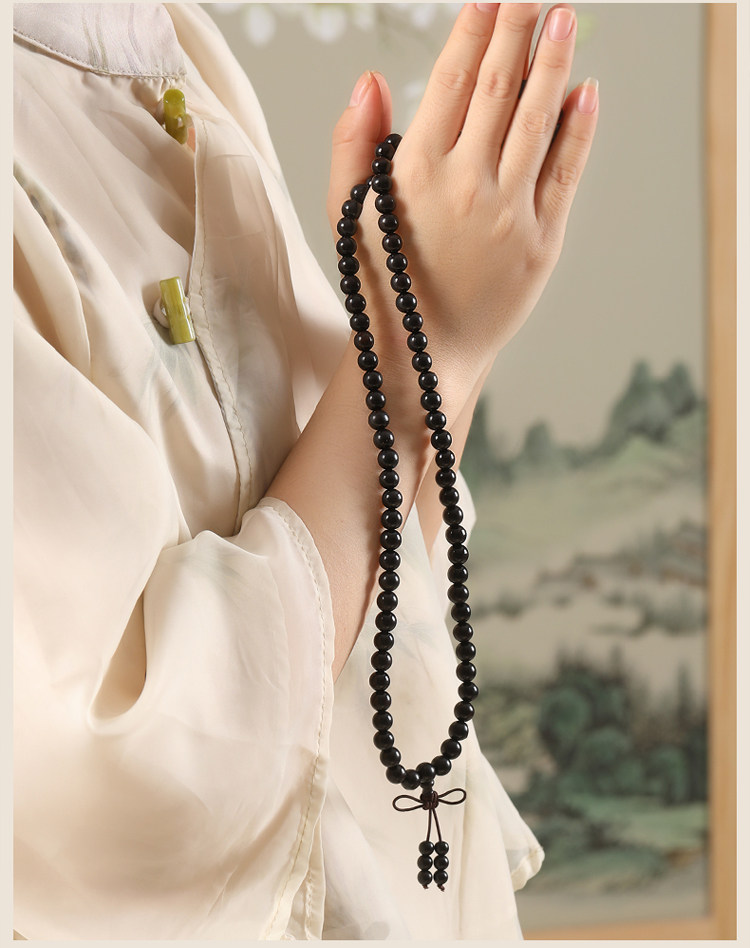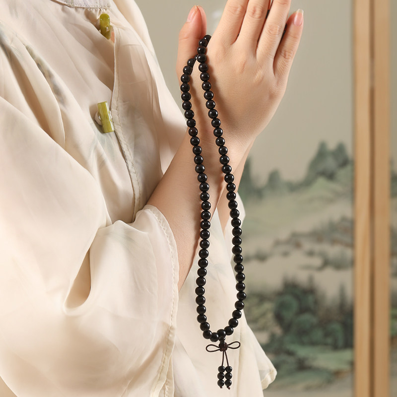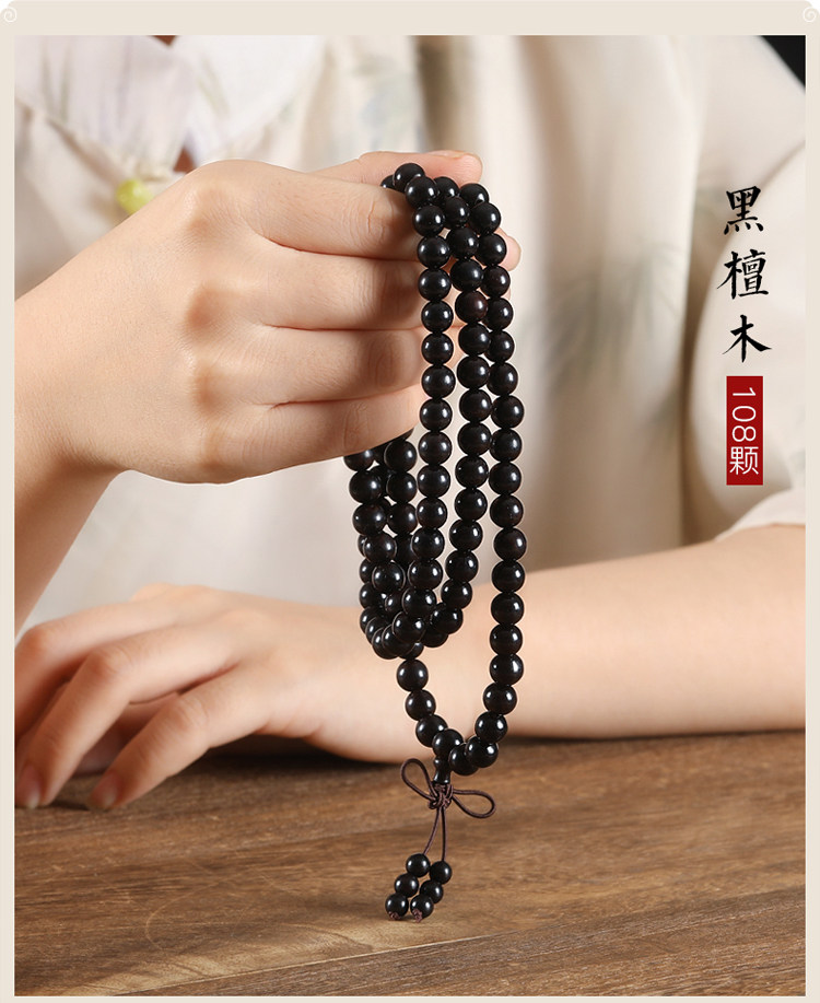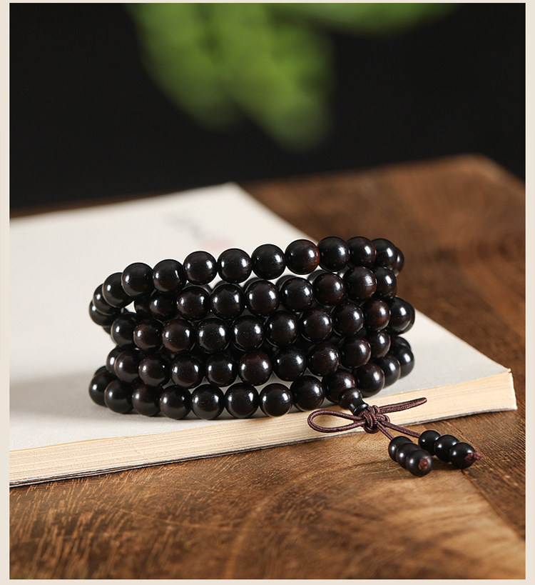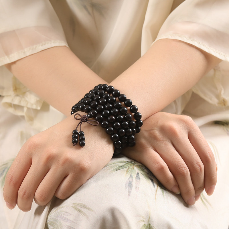 Натуральный браслет из черного дерева Эбен из сандалового дерева, портативные четки подходит для мужчин и женщин для влюбленных, 108 бусин