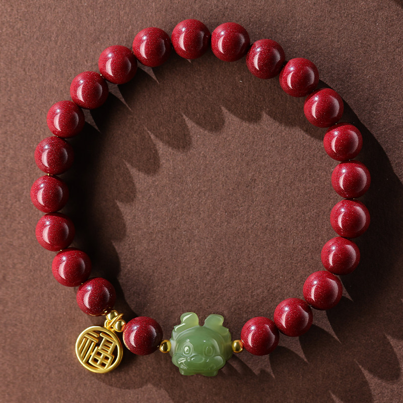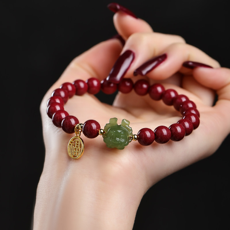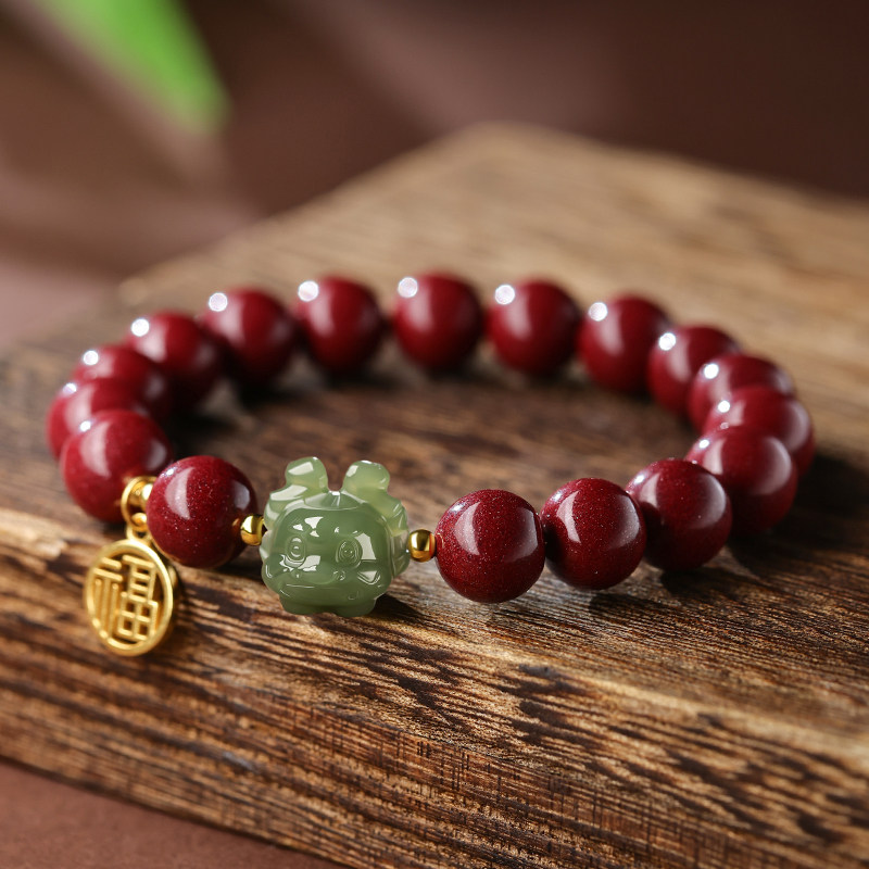 Оберег на день рождения из нефрита, браслет с одной бусиной, амулет, цвета киновари