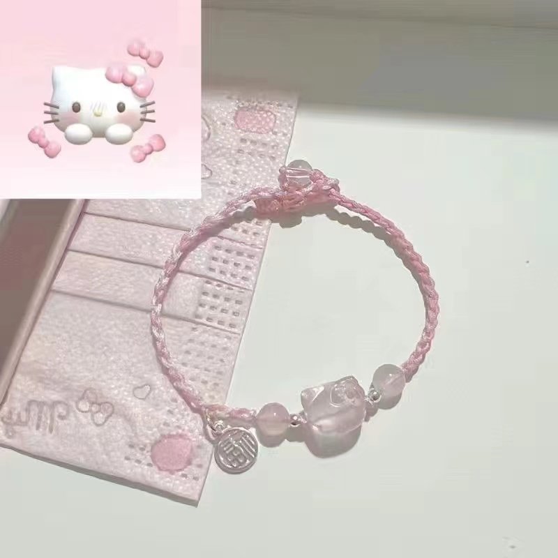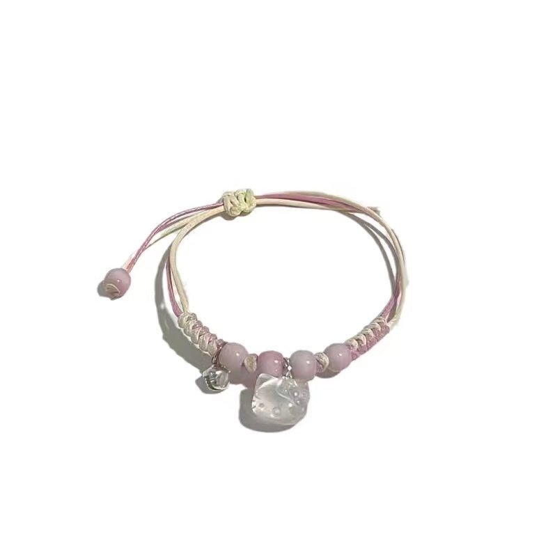 Плетеная розовая свежая милая подвеска, ювелирное украшение с бабочкой, браслет из красной нити, колокольчик, в корейском стиле, широкая цветовая палитра, кот