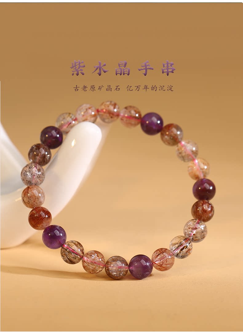 Натуральный браслет из кварца, бусины с аметистом, браслет из бусин