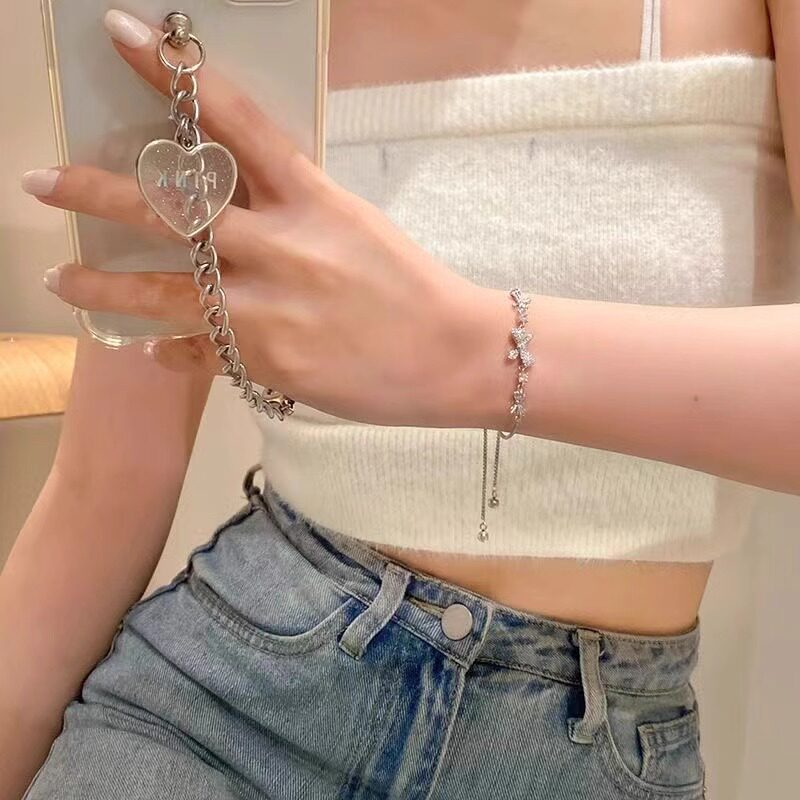 Брендовый небольшой дизайнерский браслет с бантиком, ювелирное украшение с цирконом, изысканный стиль, 2024 года