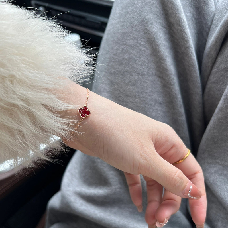 Золотой браслет из красной нити, золото 18 карат, четырехлистный клевер, розовое золото, подарок на день рождения