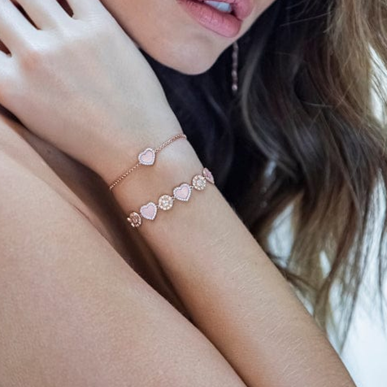 Браслет APM Monaco с розовым перламутром и сердечками для девочек, регулируемый браслет Love, подарок на день рождения подруге