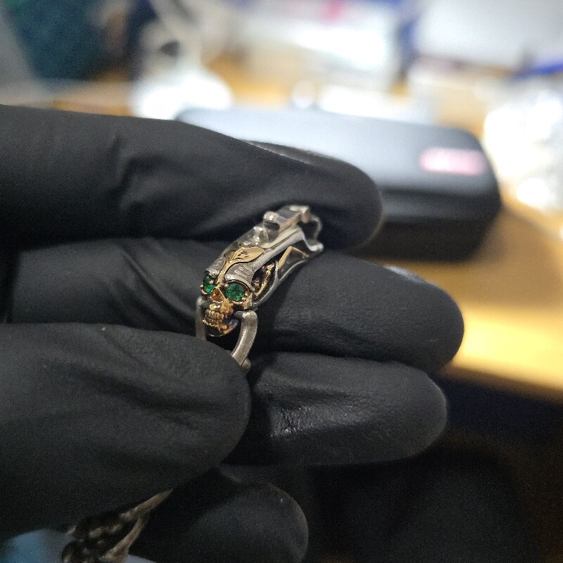 - Усовершенствованная модель с зелеными глазами из 18-каратного золота. При оформлении заказа обратите внимание на размер вашей руки.