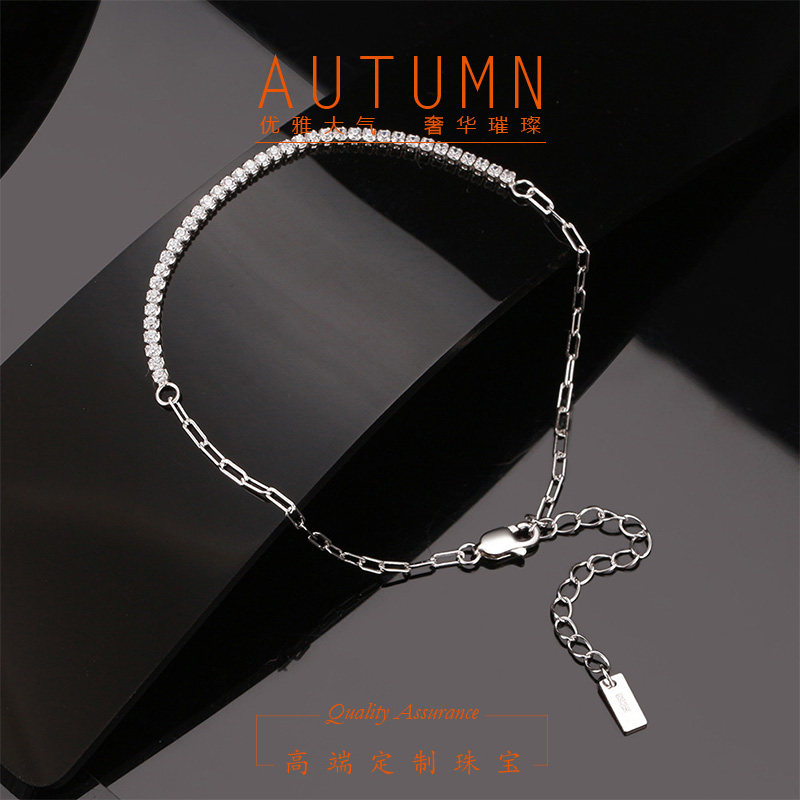 Универсальный платиновый модный блестящий бриллиантовый золотой браслет, серебро 925 пробы, простой и элегантный дизайн