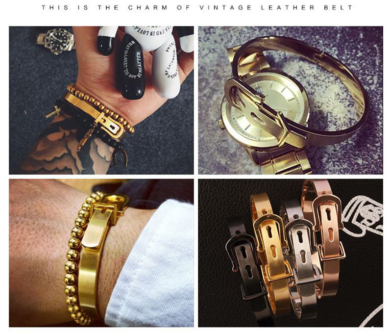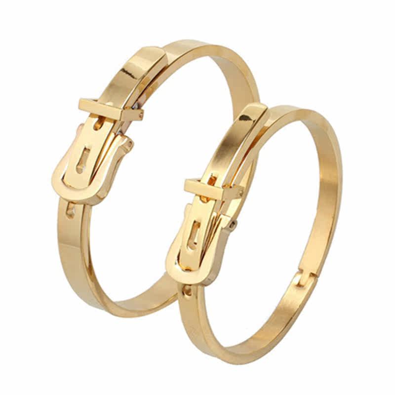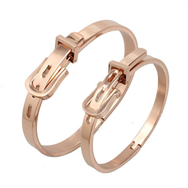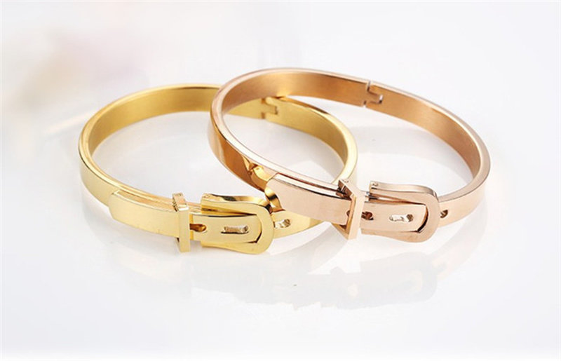 Высококлассный золотой браслет из нержавеющей стали для влюбленных, ремень, глянцевая пряжка
