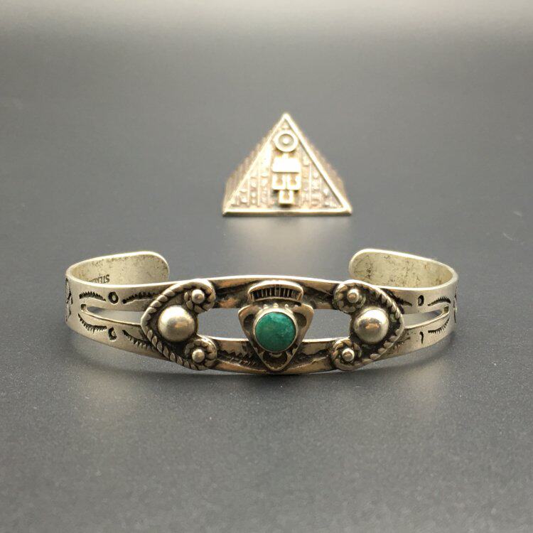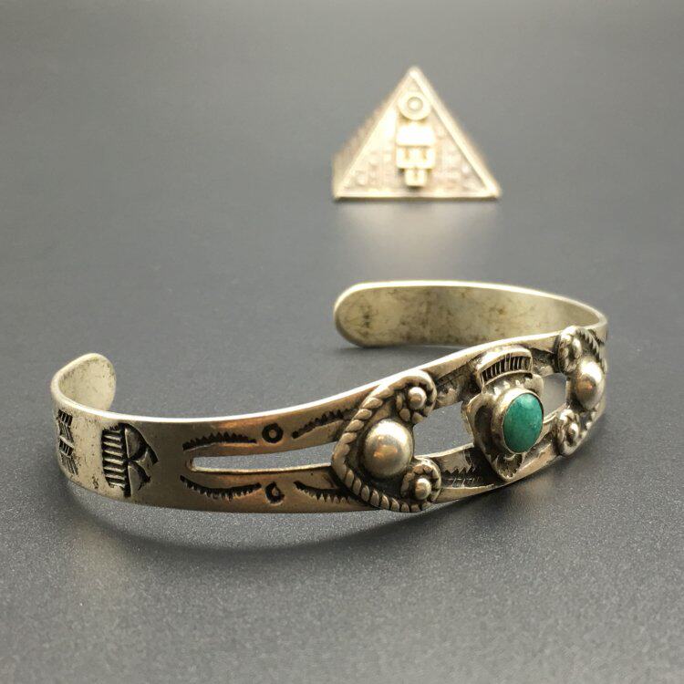 Бирюзовый антикварный браслет, США, серебро 925 пробы