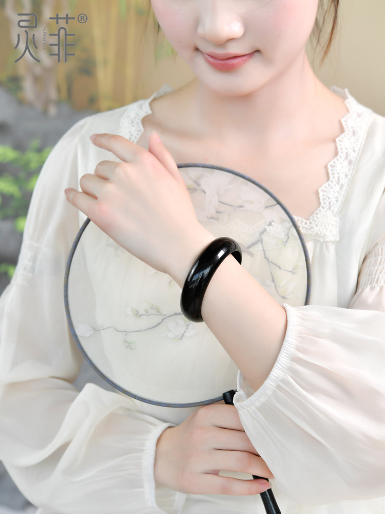 Коллекционный браслет на руку из натурального черного золота с обсидианом для женщин, браслет на руку с настоящим кристаллом, круглый широкий браслет на руку