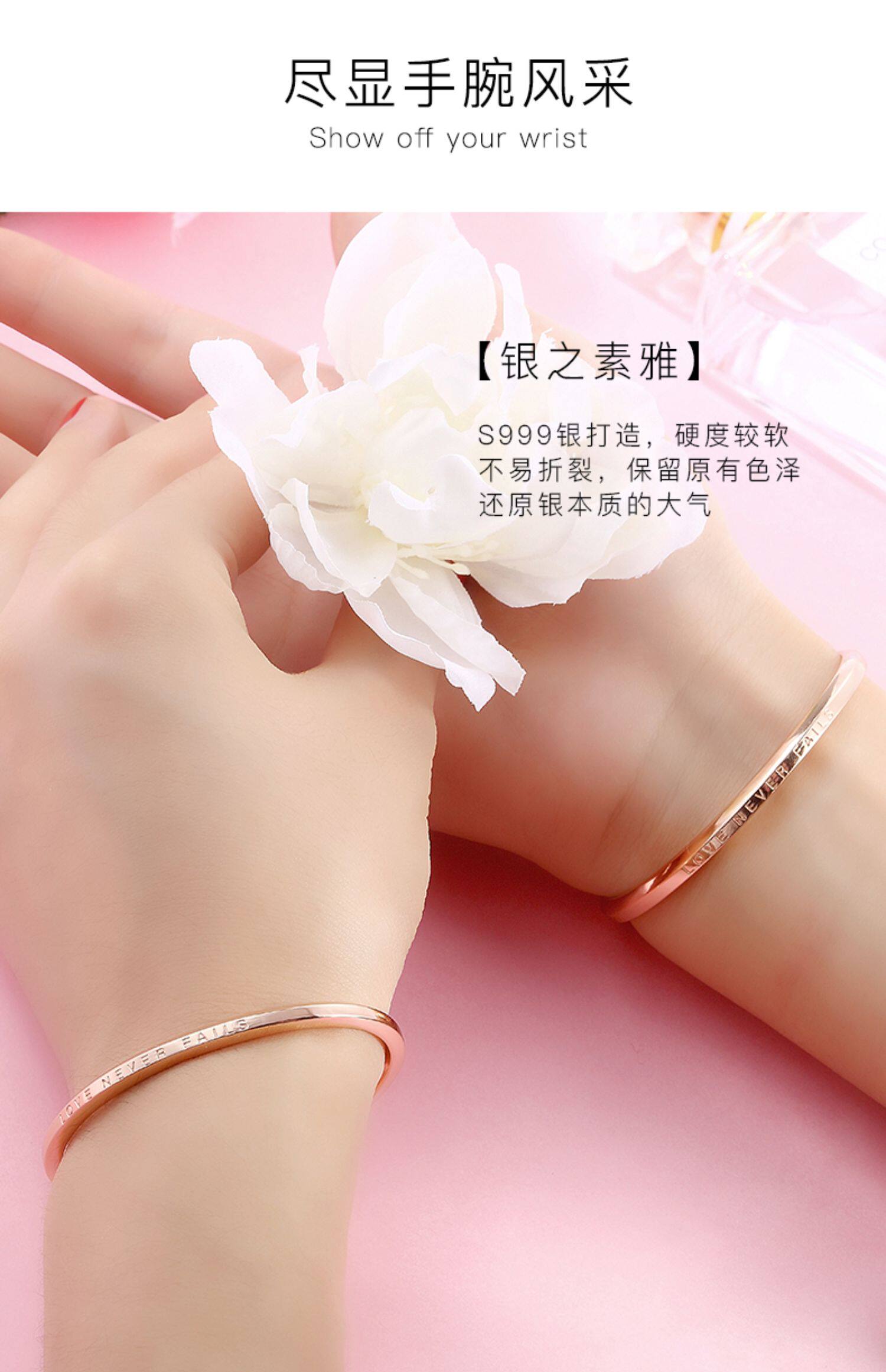 Золотой браслет, делается под заказ, серебро 999 пробы, для влюбленных, простой и элегантный дизайн, розовое золото, подарок на день рождения