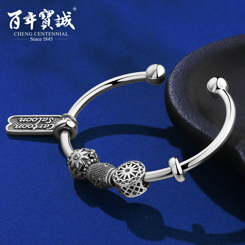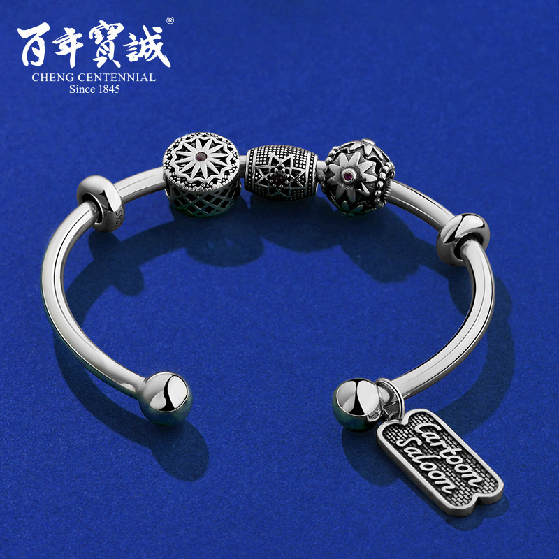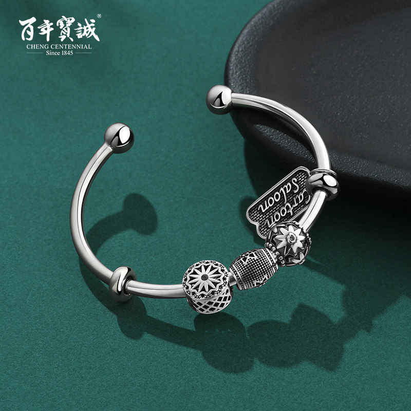 Серебряный браслет, ретро калейдоскоп, легкое украшение-шарик, жемчужное серебро, серебро 925 пробы, DIY