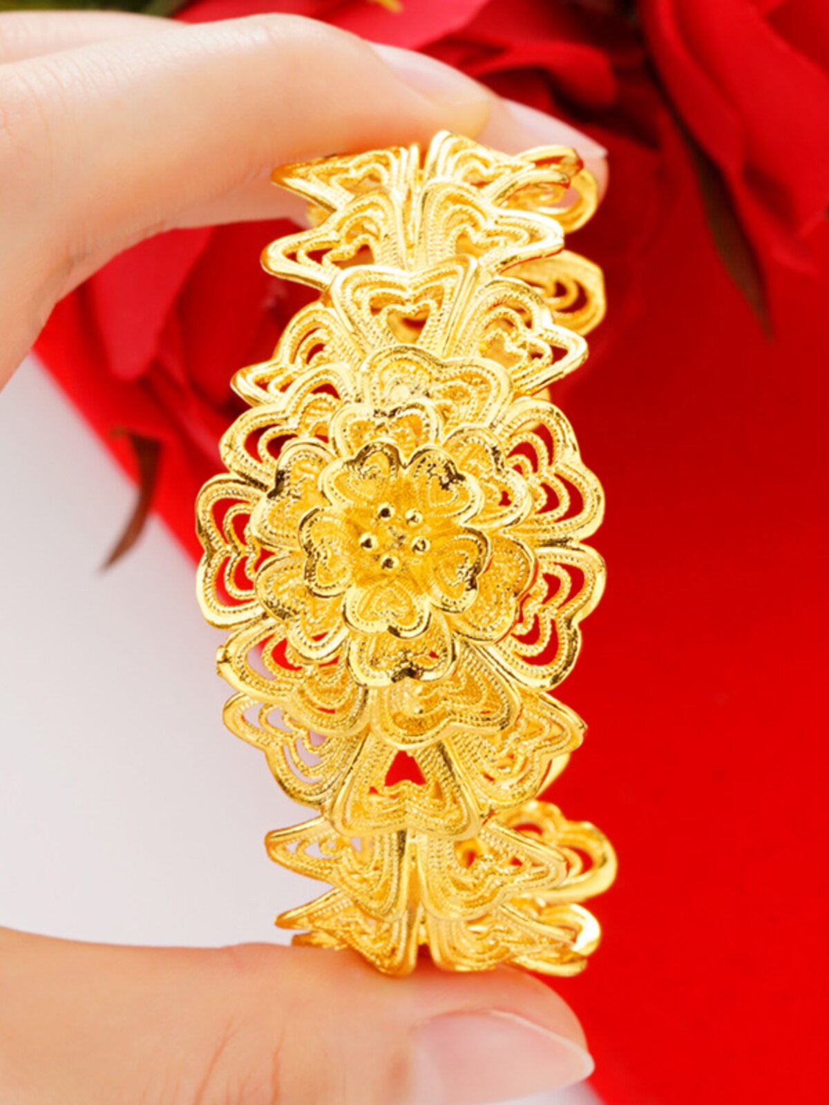 Купить товар Новый вьетнамский браслет с золотым цветком из песка для женщин, классический браслет с срезанными цветами, свадебные украшения из искусственного золота