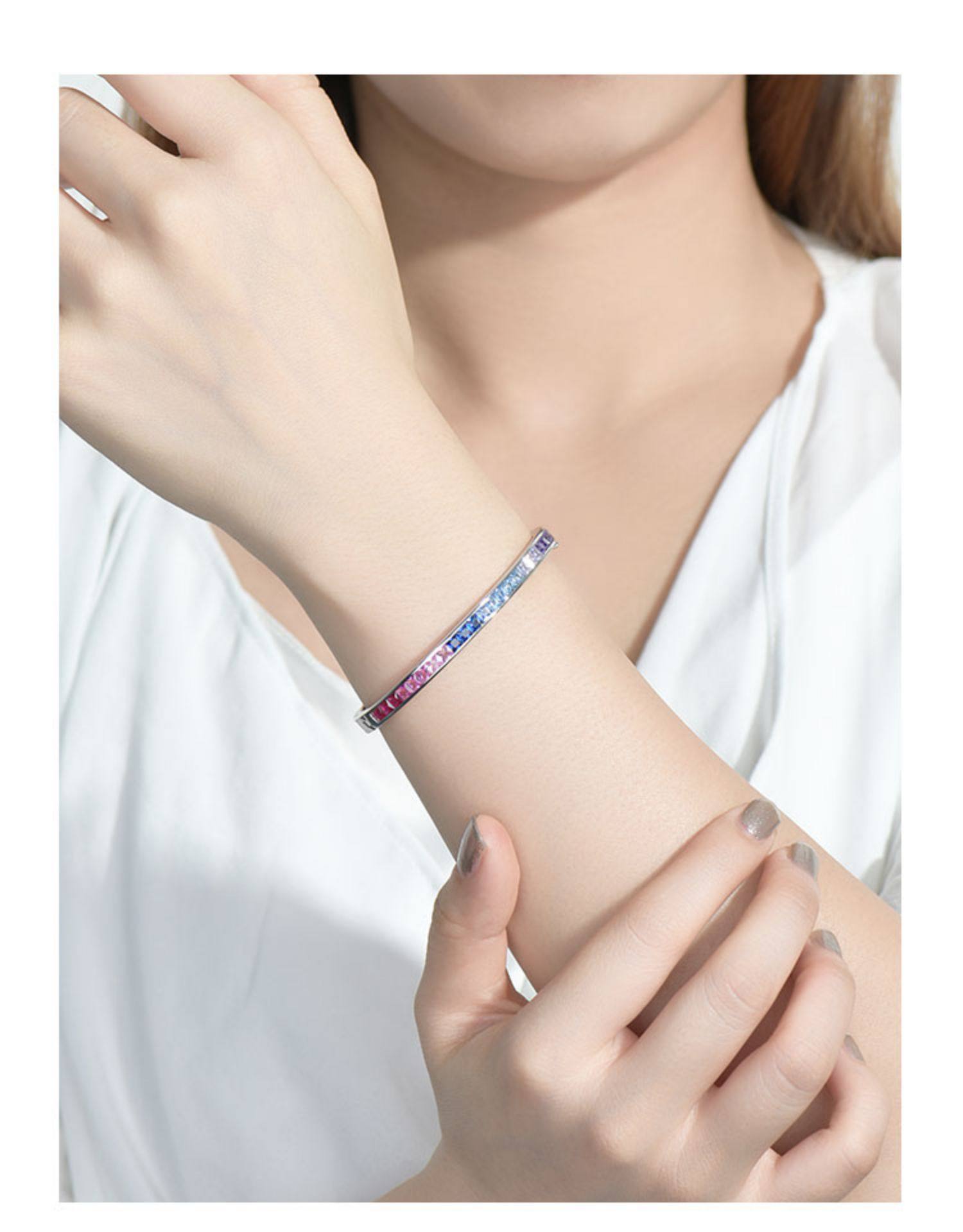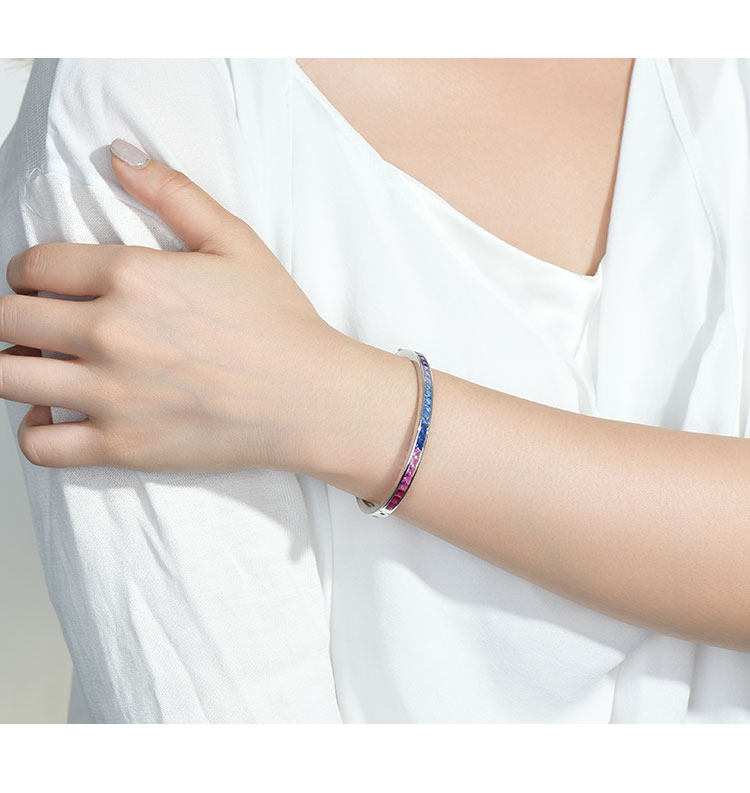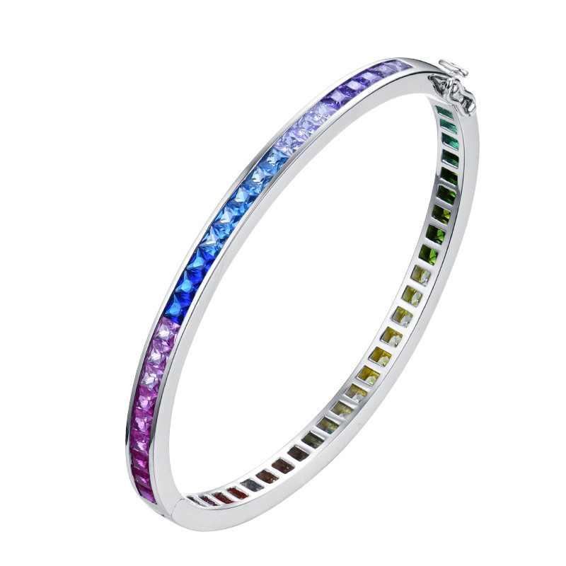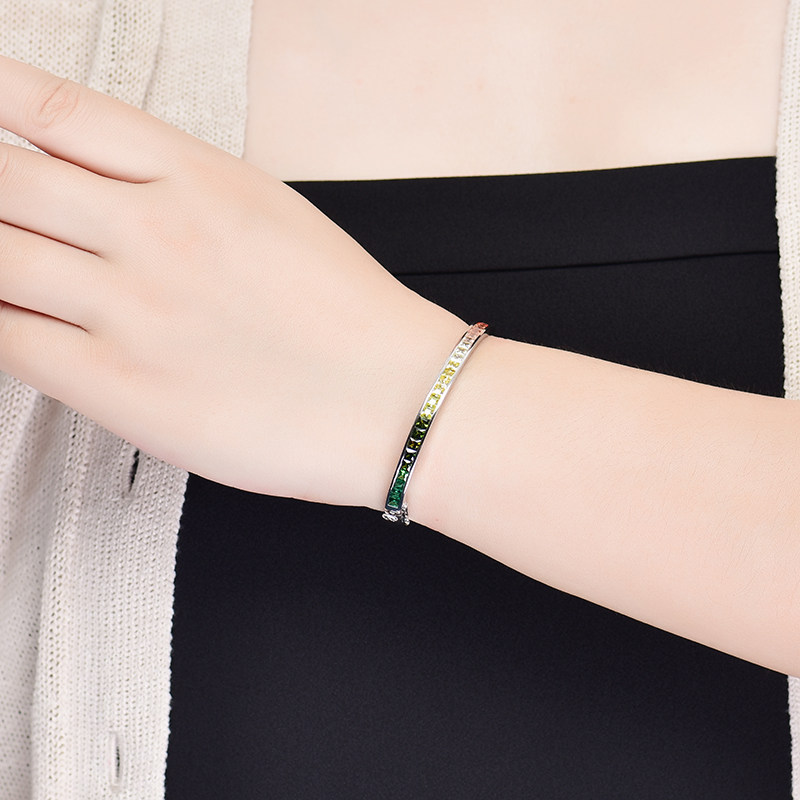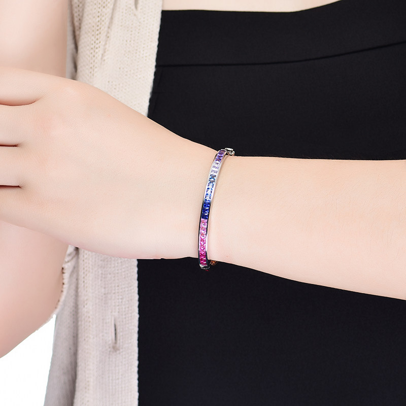 Ювелирное украшение, сапфировый радужный модный браслет из натурального камня, серебро 925 пробы, градиент, с драгоценным камнем