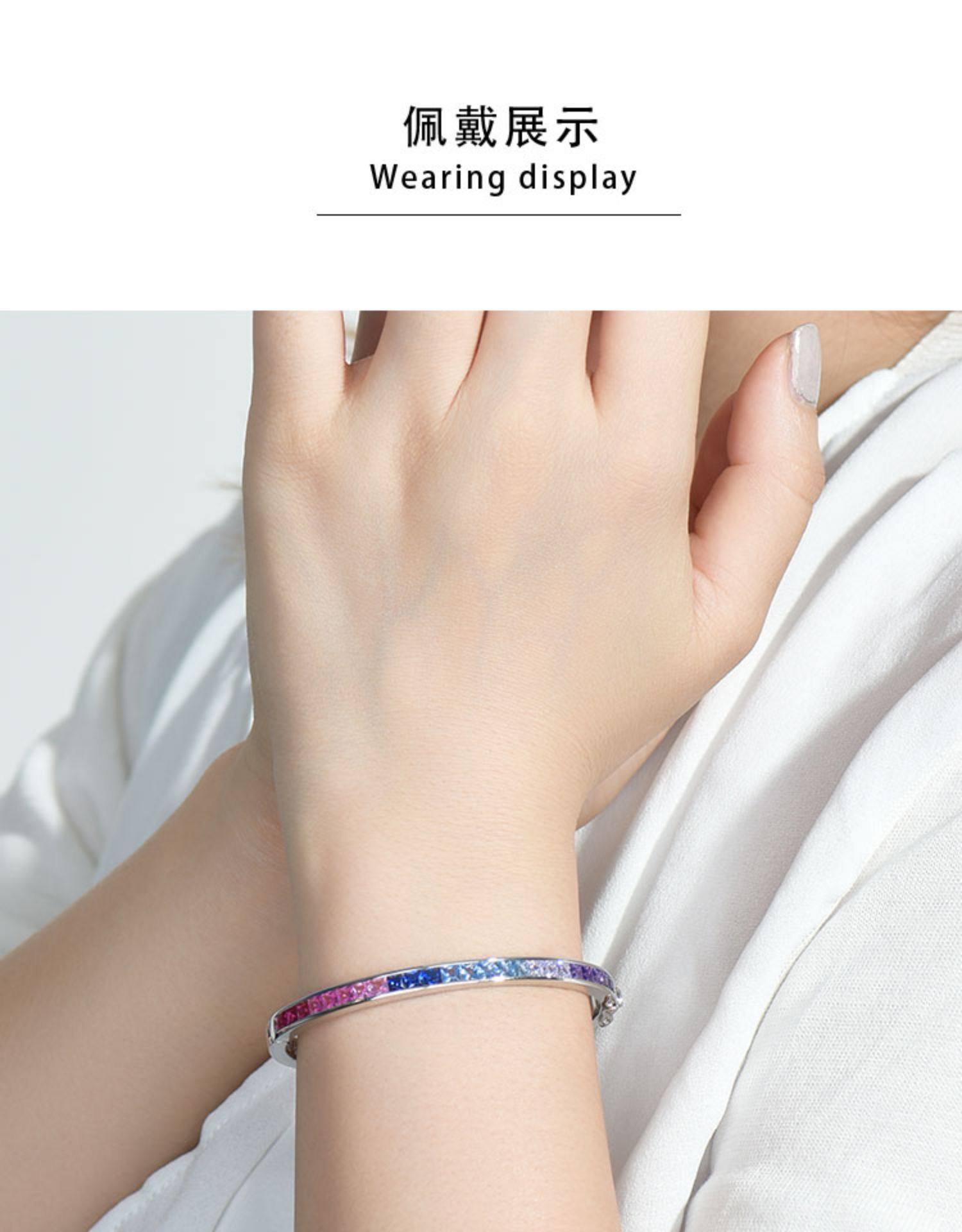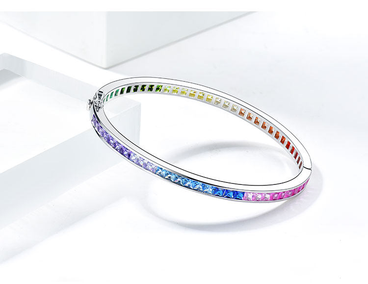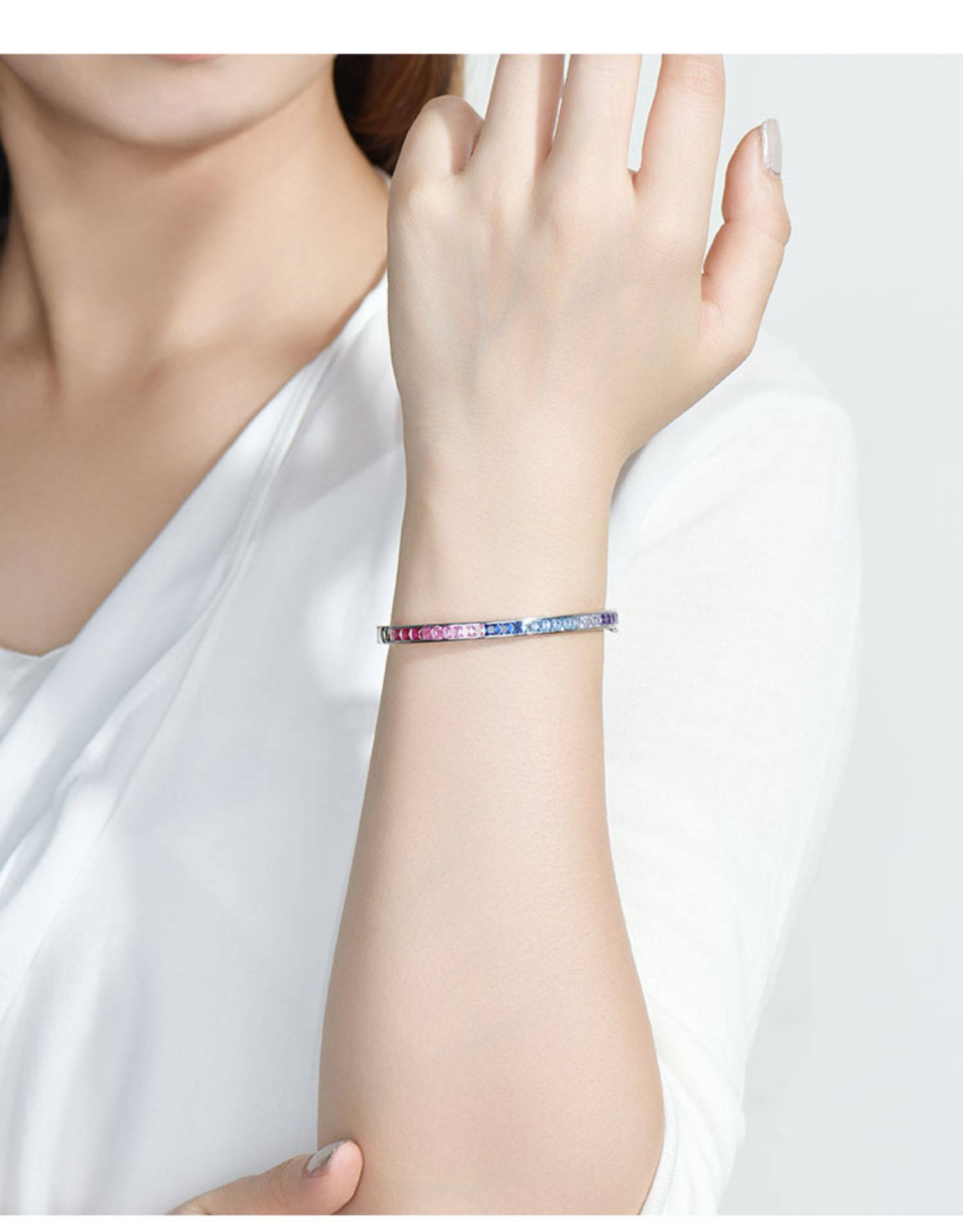 Ювелирное украшение, сапфировый радужный модный браслет из натурального камня, серебро 925 пробы, градиент, с драгоценным камнем