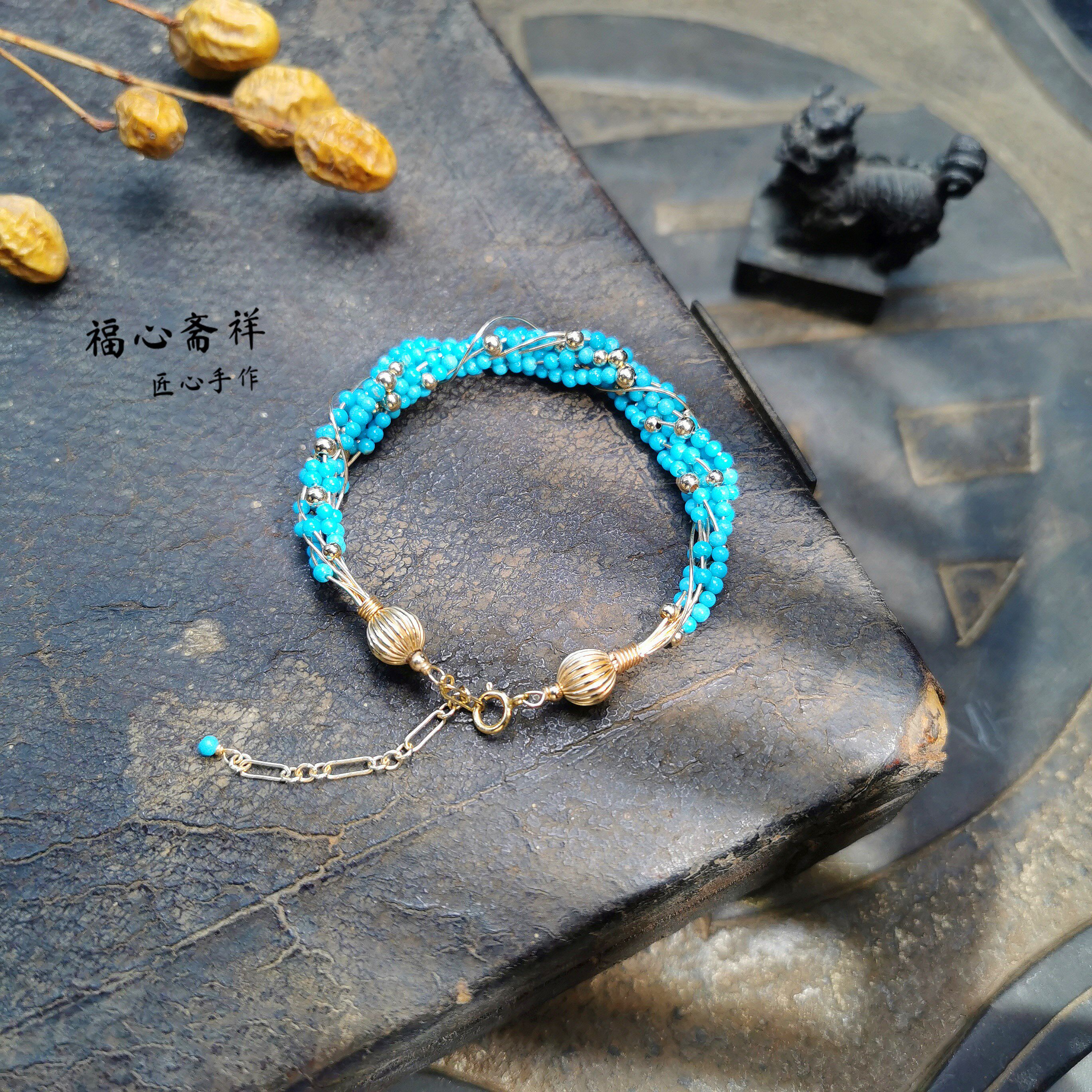 Натуральная бирюзовая природная руда, оригинальный дизайнерский браслет из натурального камня, бусины