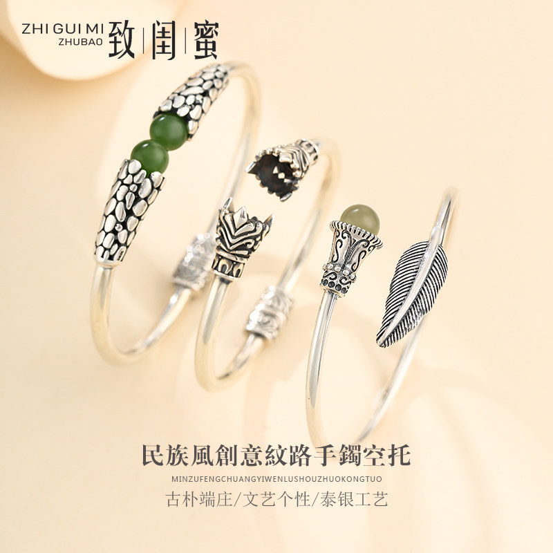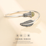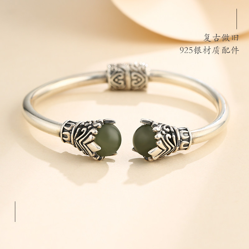 Ретро серебряный браслет, инкрустация камня, бирюзовая яшма из воскового агата из натурального камня, серебро 925 пробы