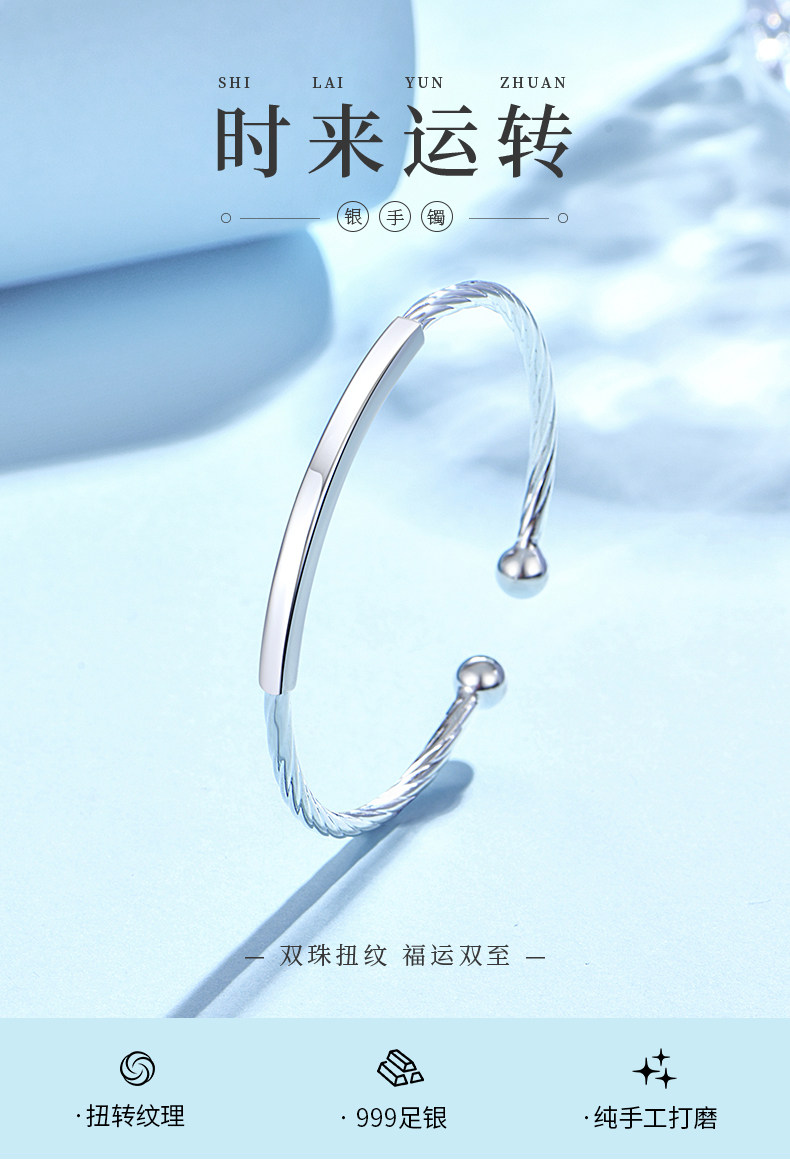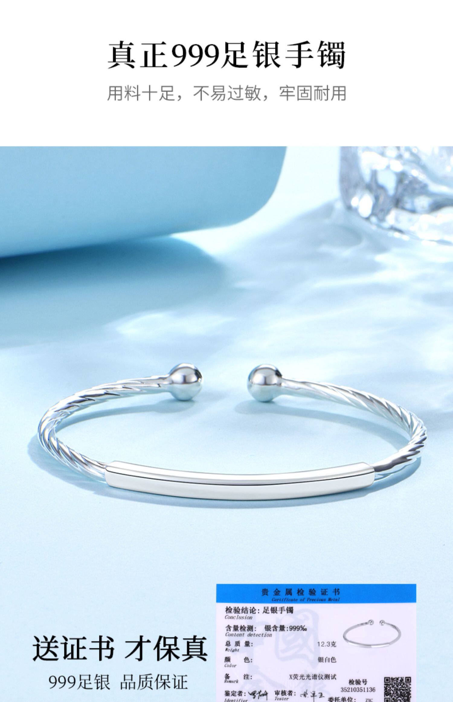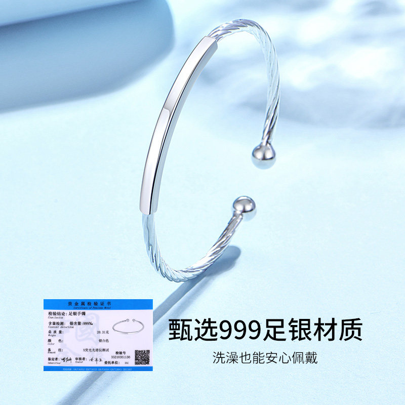 Легкий серебряный браслет, серебро 999 пробы, изысканный стиль, подходит для студента