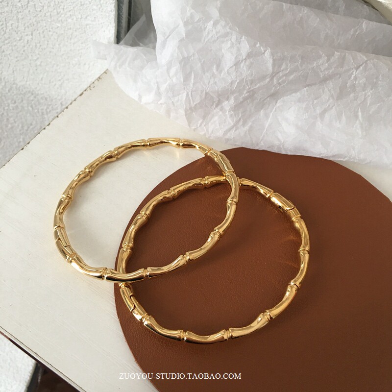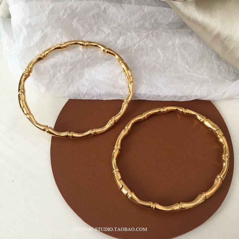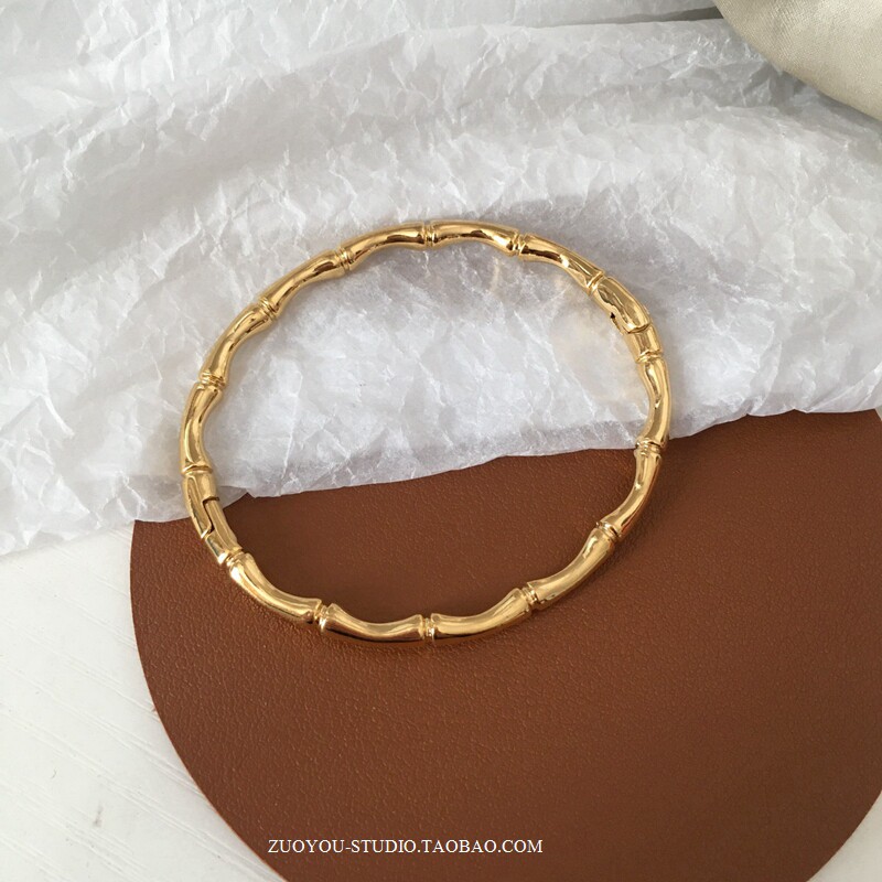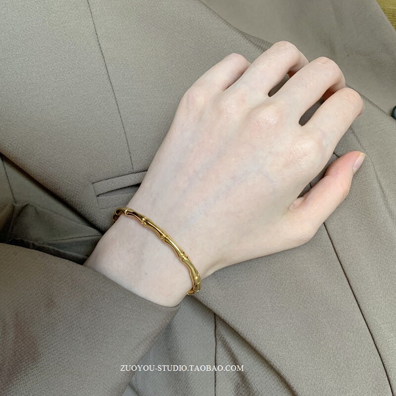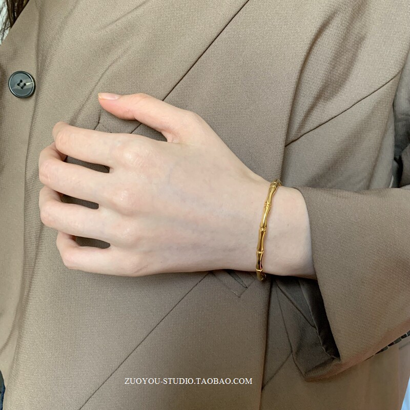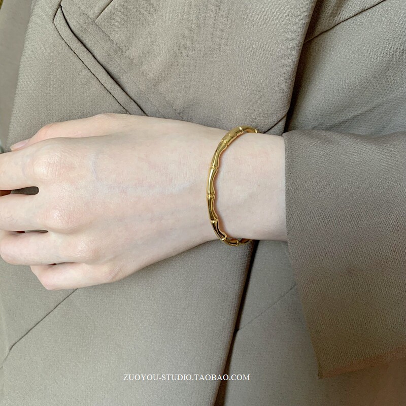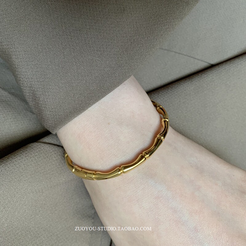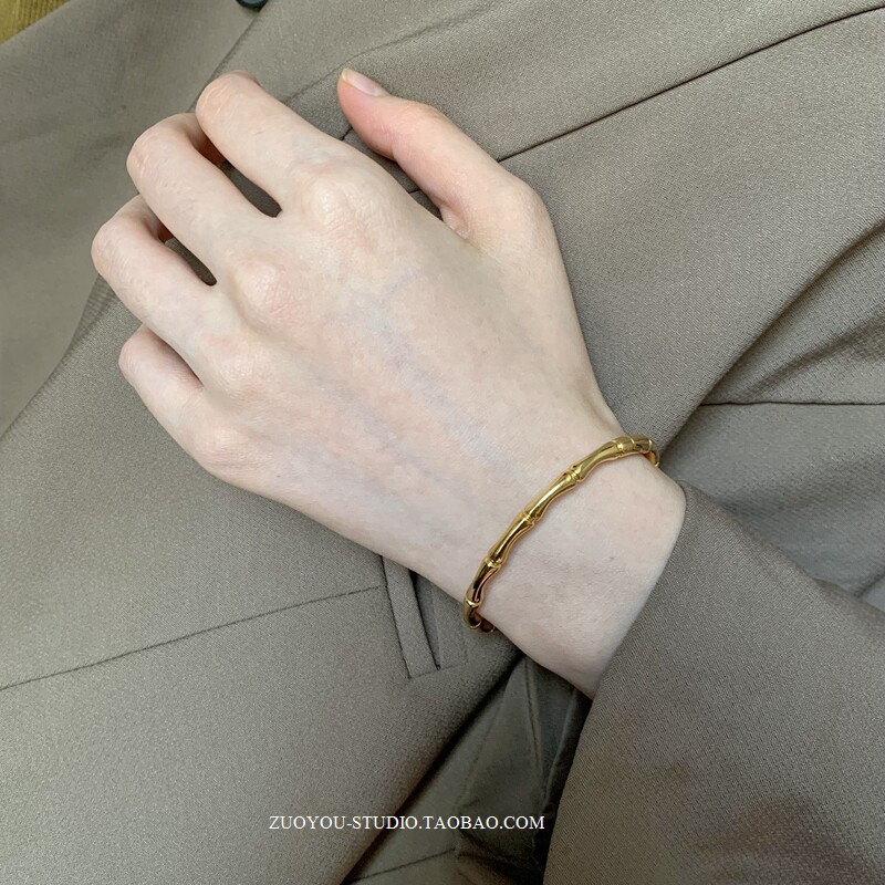 Брендовый универсальный золотой бамбуковый женский браслет из нержавеющей стали, не выцветает, популярно в интернете, изысканный стиль