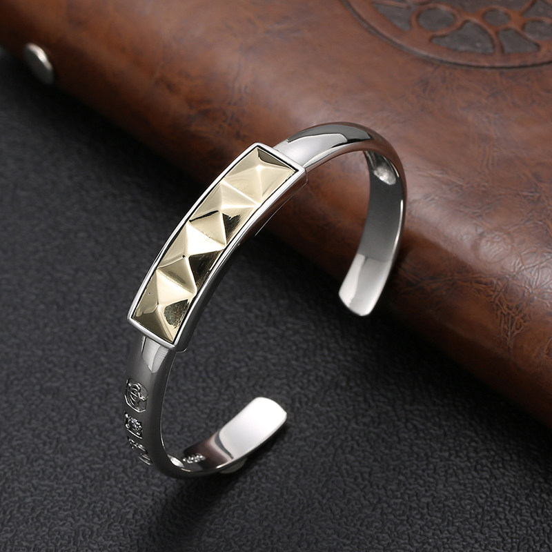 Модный браслет с ромбовидным узором, универсальный трендовый глянцевый аксессуар, серебро 925 пробы, яркий броский стиль, изысканный стиль