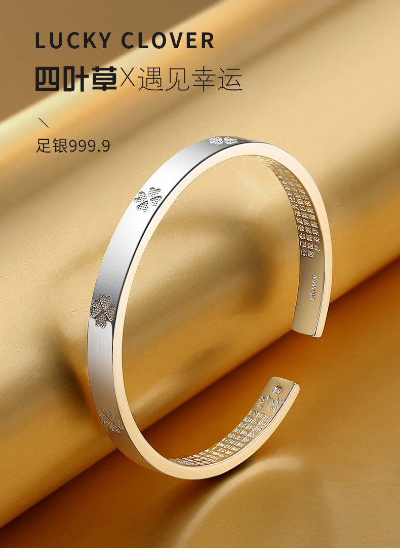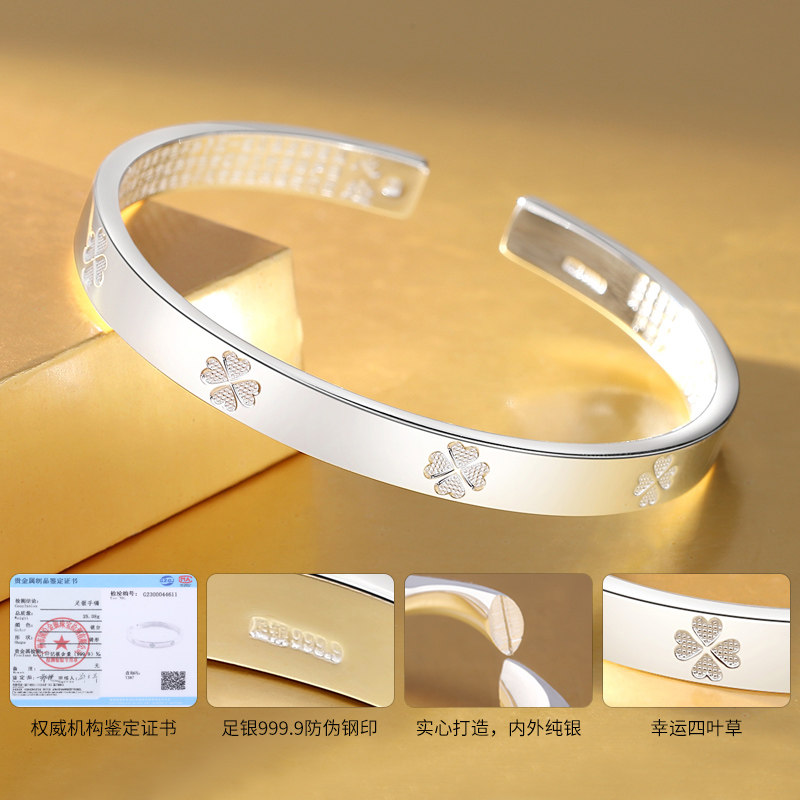 Серебряный браслет для друга, четырехлистный клевер, серебро 9999 пробы, подарок на день рождения