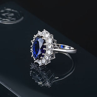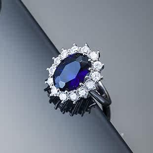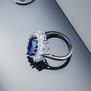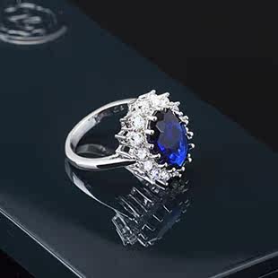 Ретро аксессуар, сапфировое платиновое кольцо с камнем с цирконом