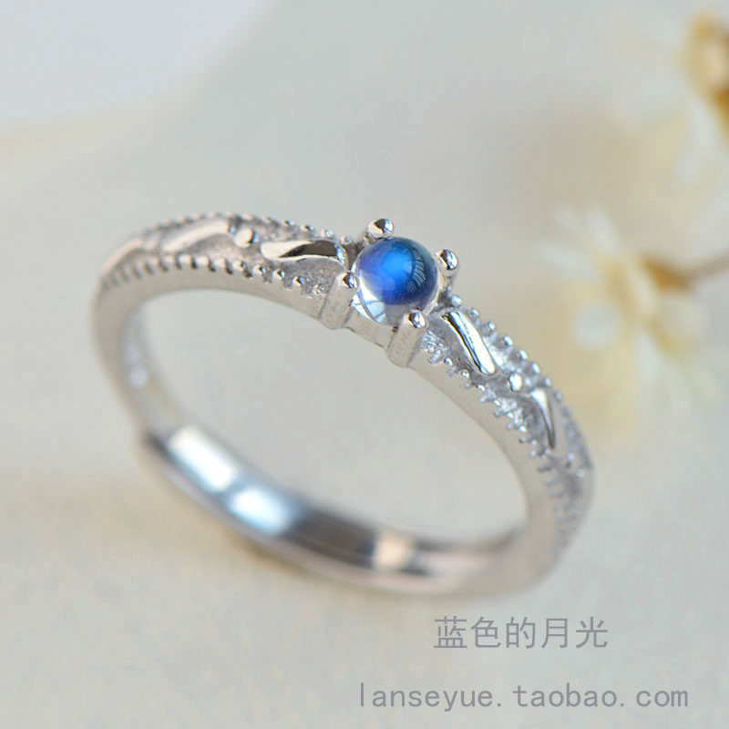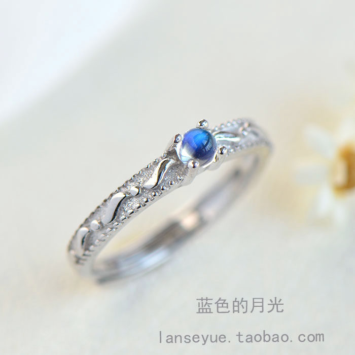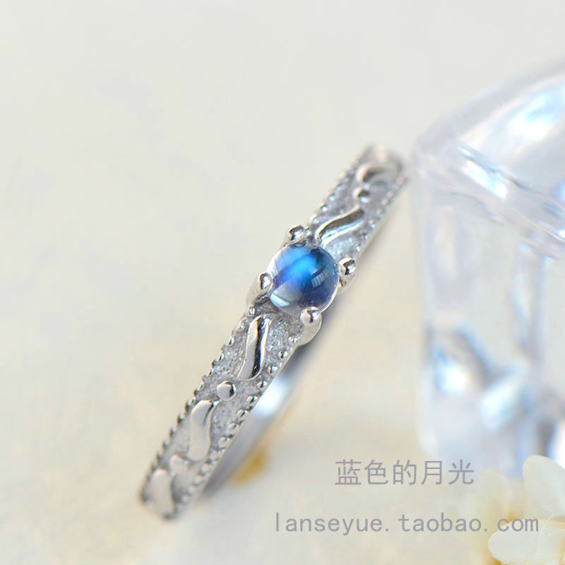 Натуральное ретро кольцо с камнем для школьников и студентов, лунный камень, серебро 925 пробы, японские и корейские, для влюбленных, подарок на день рождения