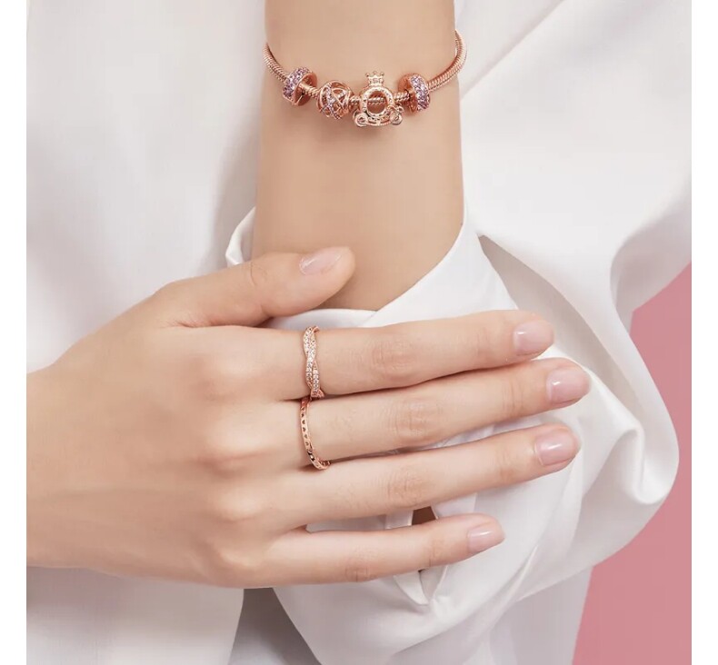 Pandora, золотое кольцо, розовое золото, подарок на день рождения