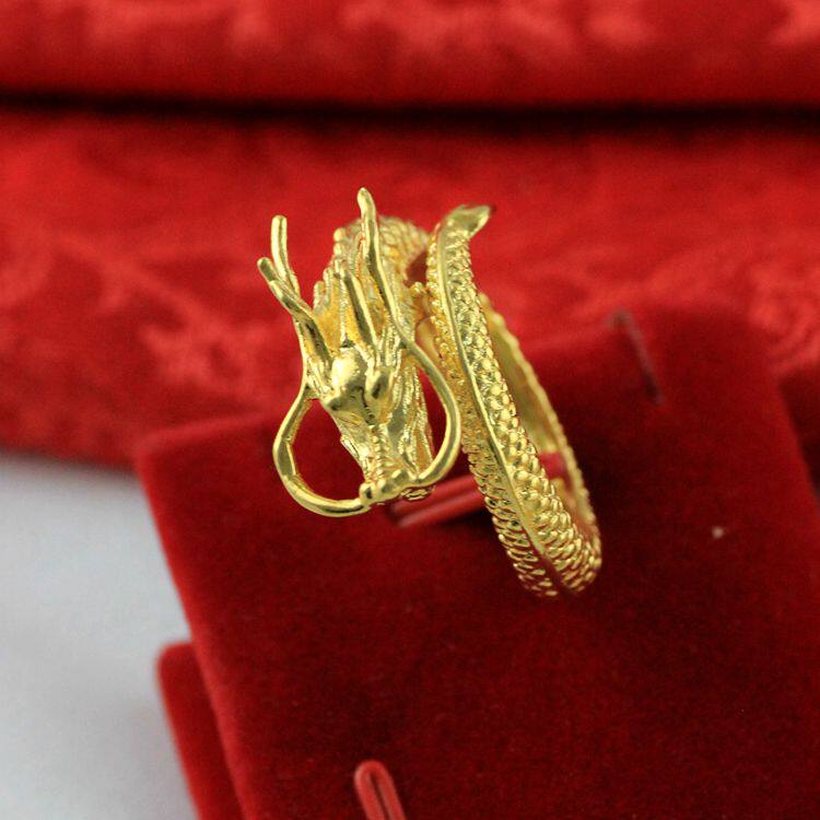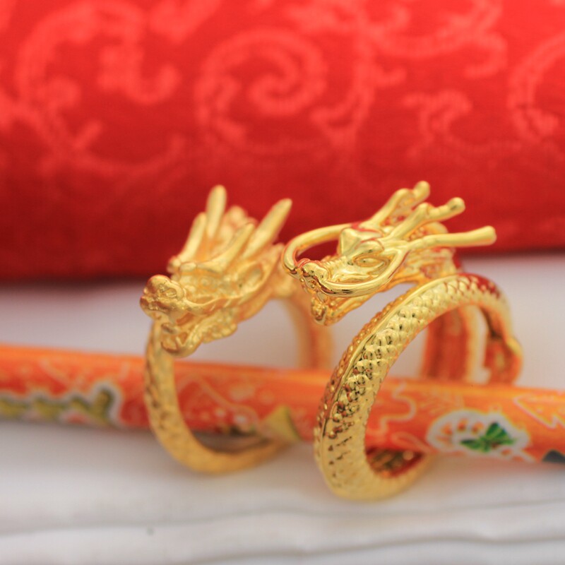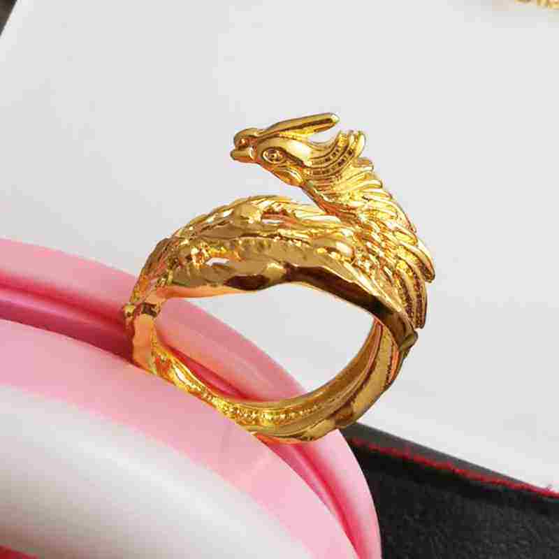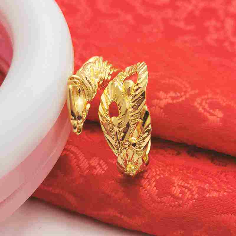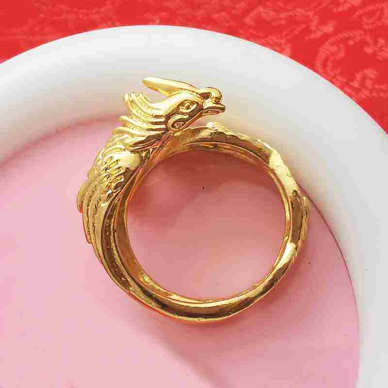 Золотое медное кольцо, аксессуар, 24 карат, дракон и феникс