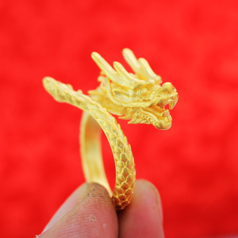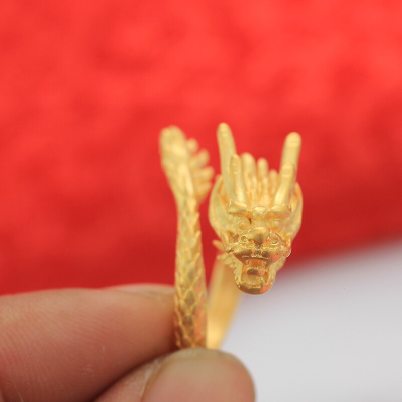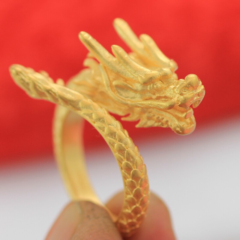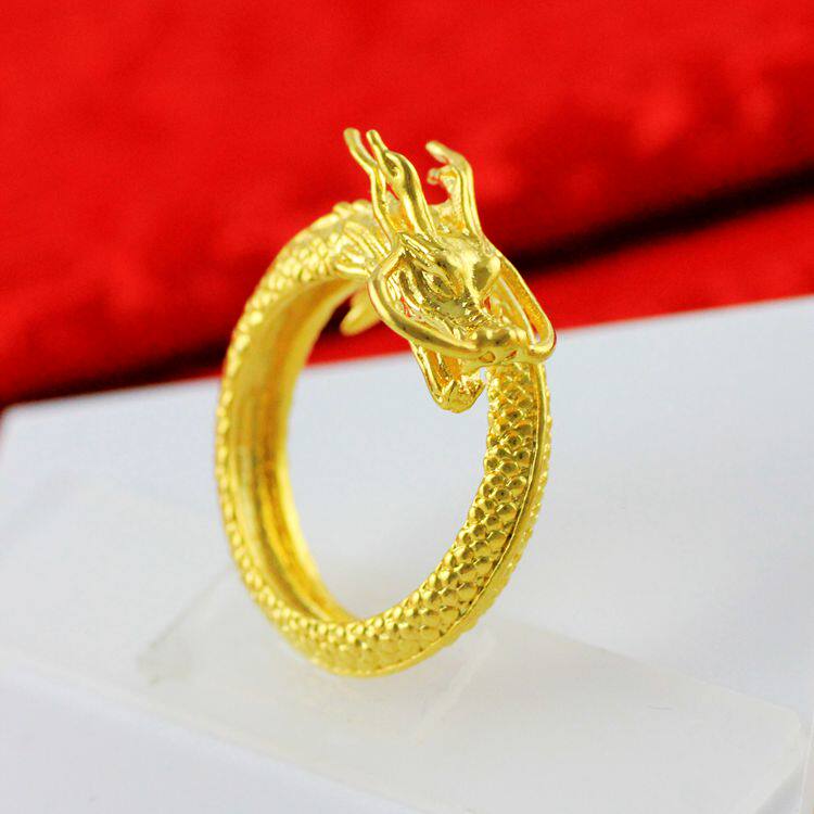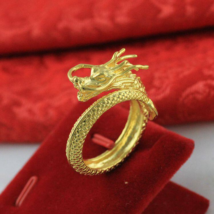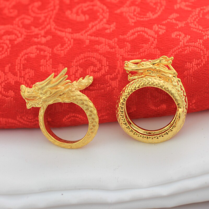 Золотое медное кольцо, аксессуар, 24 карат, дракон и феникс