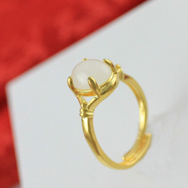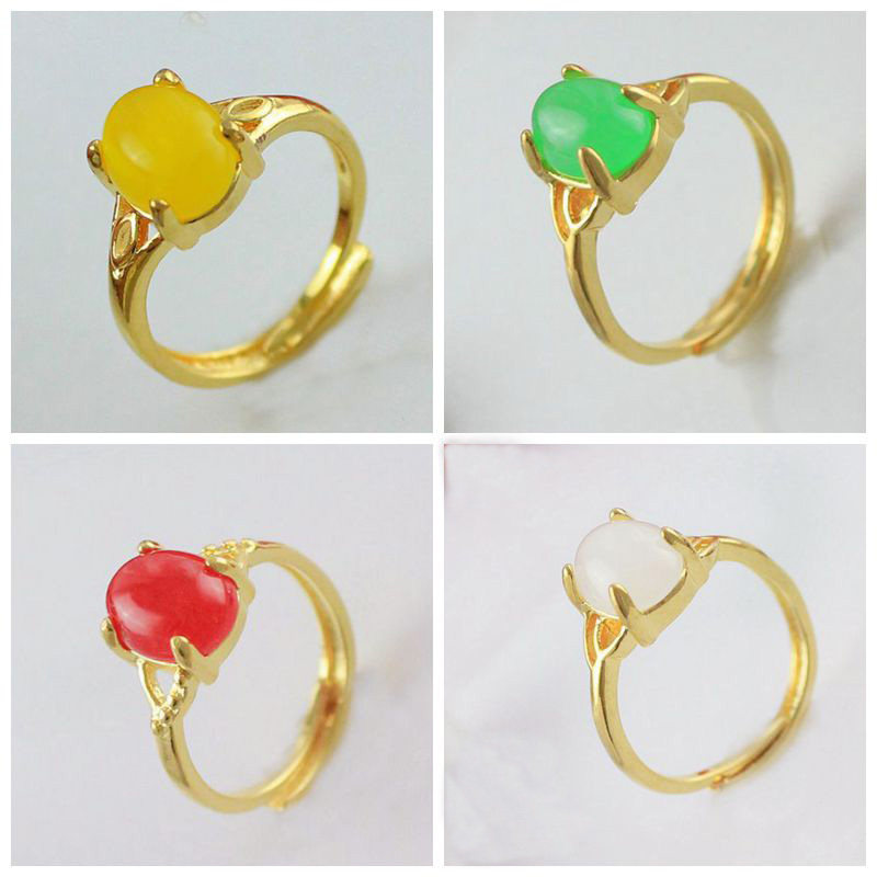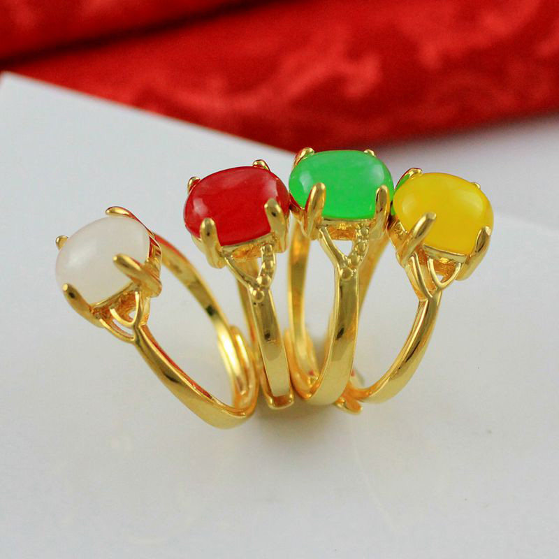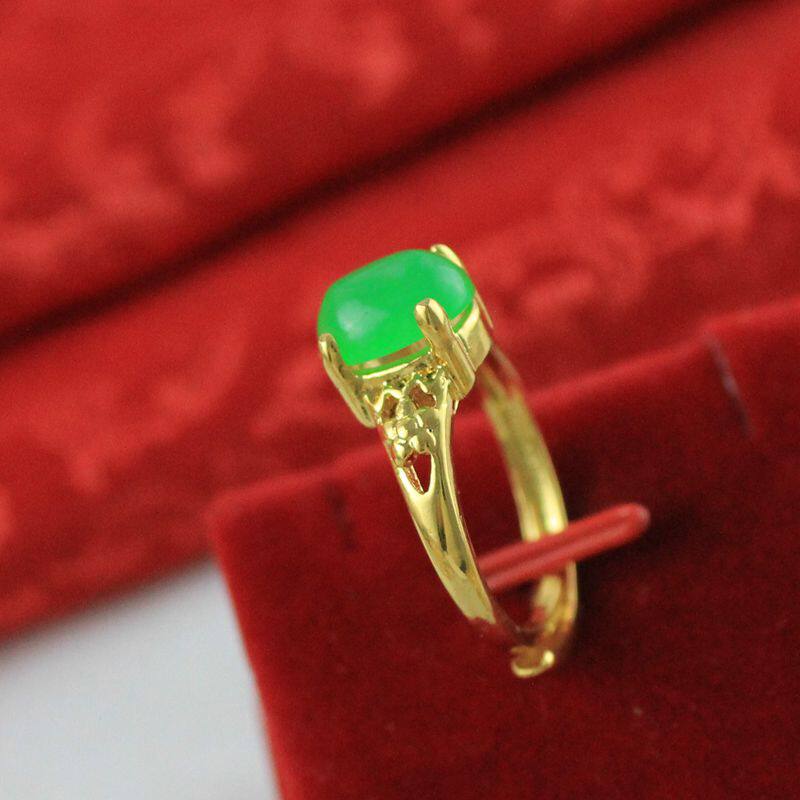 Золотая инкрустация камня с цирконом из нефрита, регулируемое кольцо, с драгоценным камнем