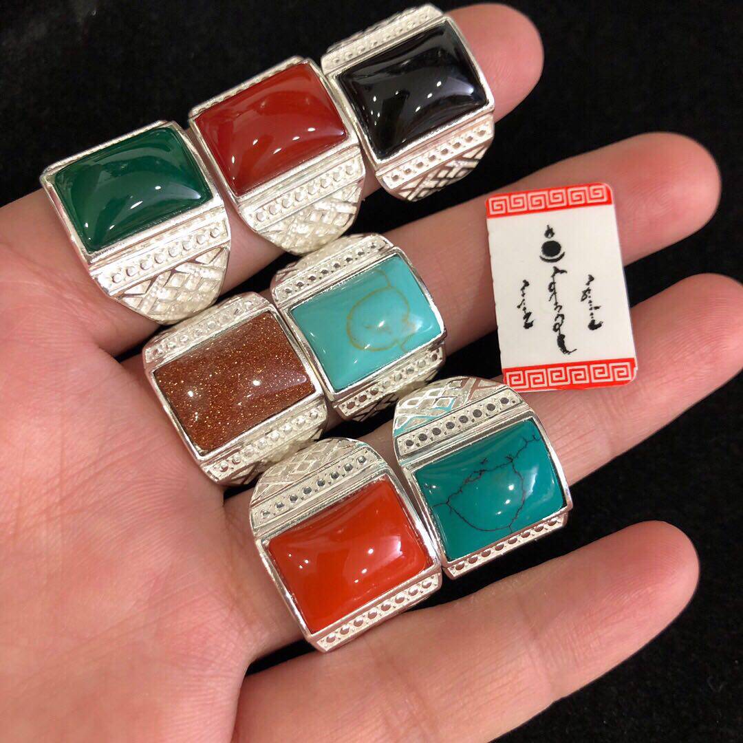 925 Чистое серебряное монгольское кольцо Ветр