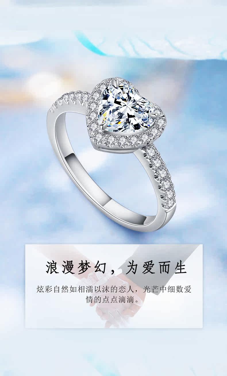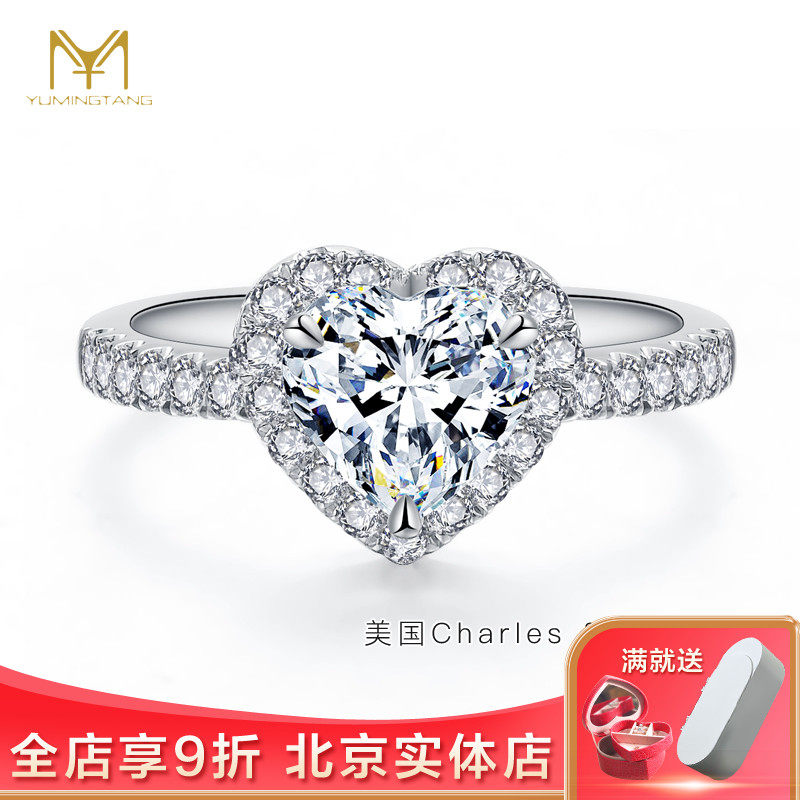 钰名堂 Кольцо с камнем, обручальное кольцо в форме сердца, золото 750 пробы, делается под заказ