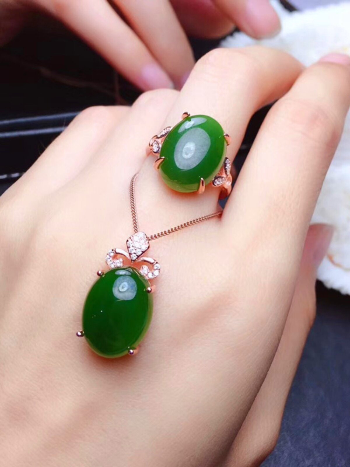 Натуральная яшма, кольцо, подвеска, золотой оригинальный регулируемый комплект из округа Хотан изумруд, серебро 925 пробы, розовое золото, с драгоценным камнем