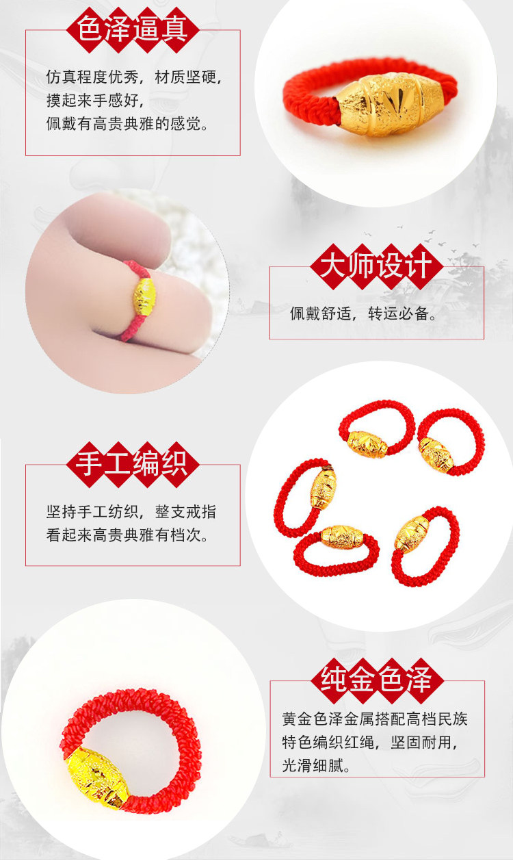 Оберег на день рождения подходит для мужчин и женщин, золотой плетеный браслет из красной нити, кольцо, простой и элегантный дизайн, на указательный палец, для влюбленных