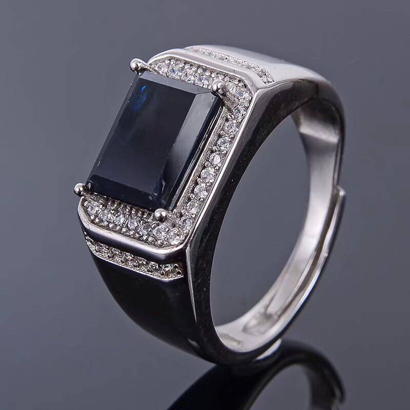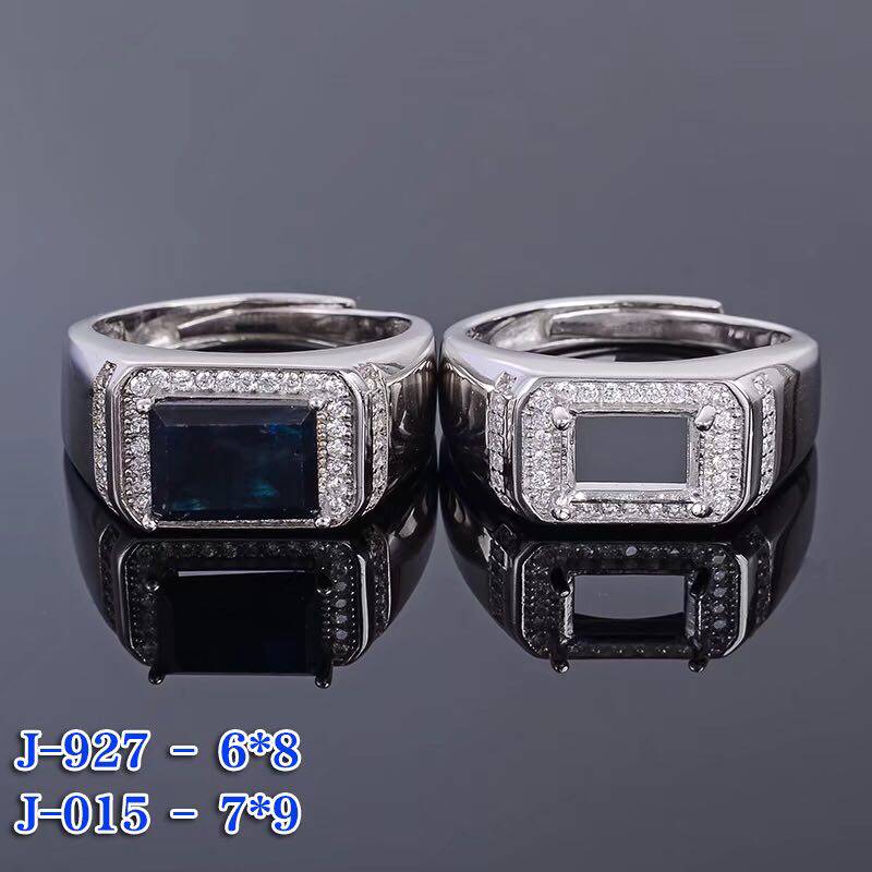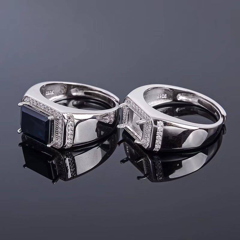 925 Серебряные кольца стерлингов пустая поддержка прямоугольная 6*8 7*9 мм Laishi Stone Inlade Sapphire, Topa Stone