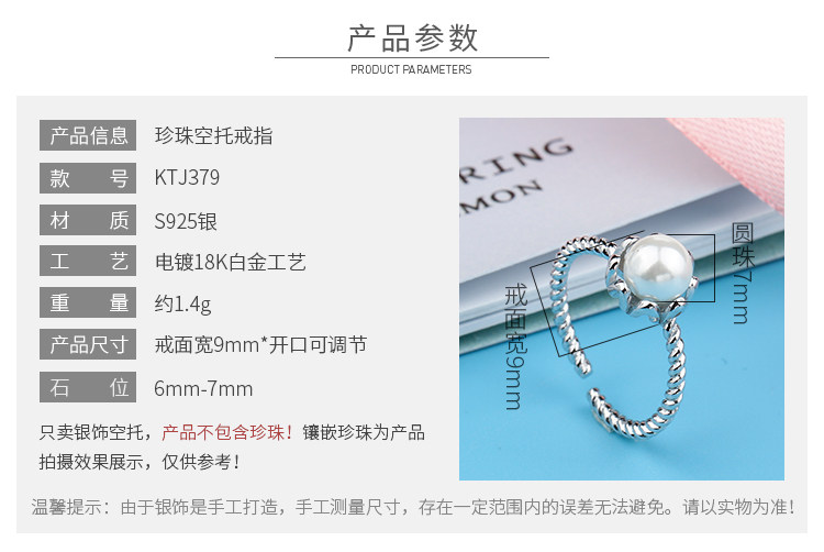 Регулируемое платиновое обручальное кольцо из жемчуга, украшение-шарик, серебро 925 пробы, белое золото 18 карат