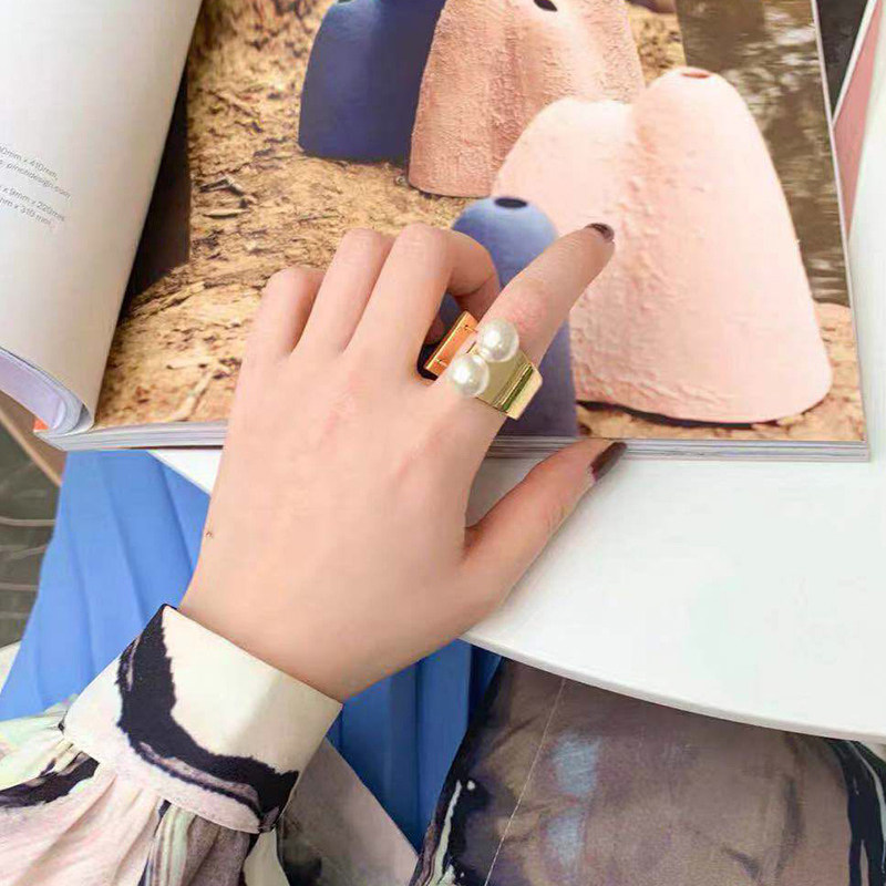 Дизайнерское модное универсальное кольцо из жемчуга, европейский стиль, городской стиль, на указательный палец, простой и элегантный дизайн