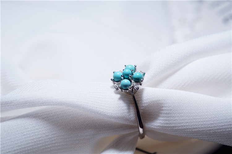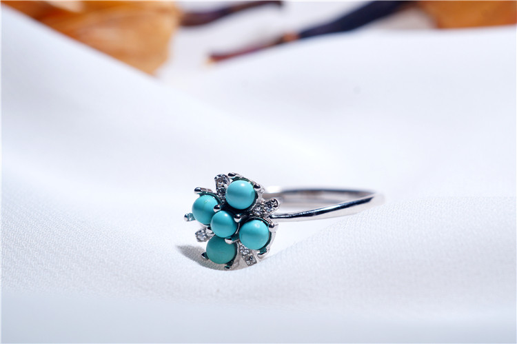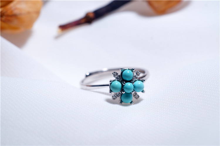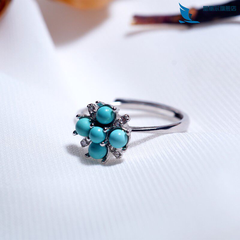 Вращающееся декомпрессионное кольцо Douyin из стерлингового серебра с бирюзой и пятью лепестками - это весело и дешево