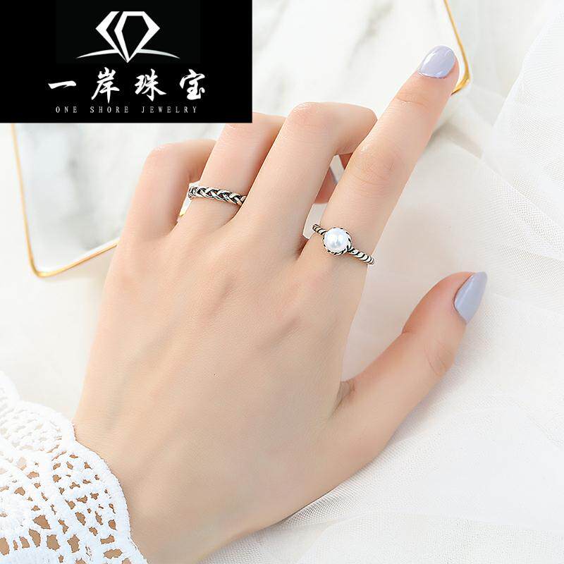 Ретро безразмерное кольцо с косичкой из жемчуга, серебро 925 пробы, серебро 925 пробы, в корейском стиле