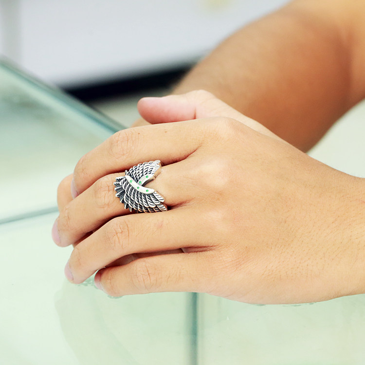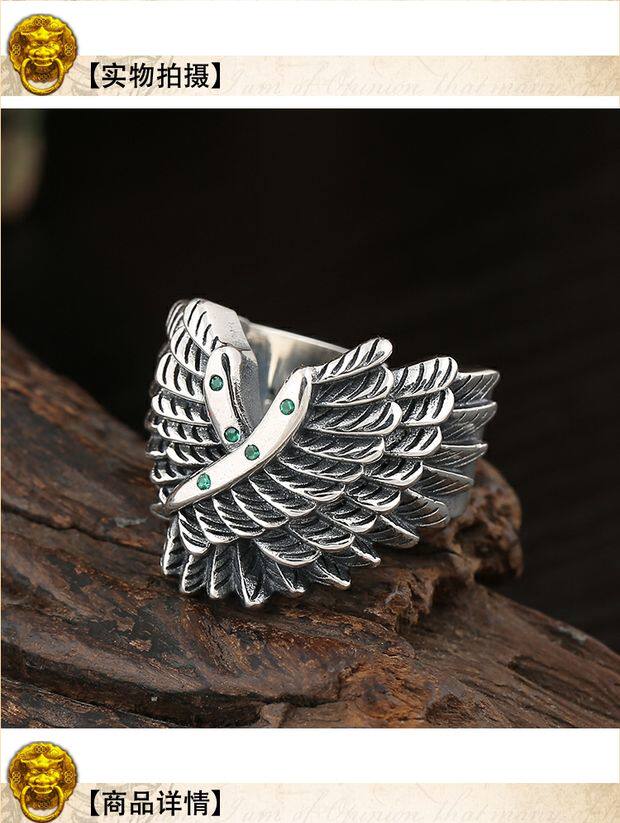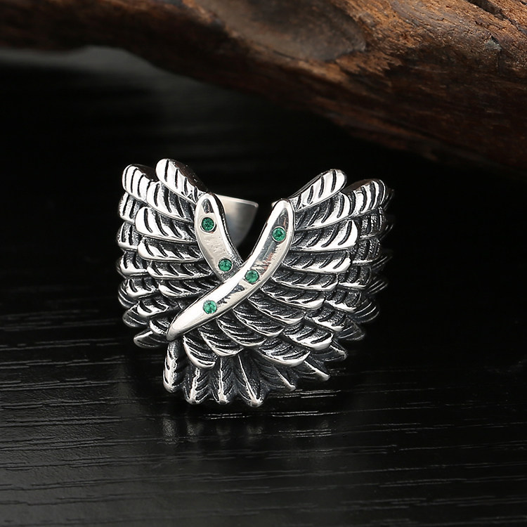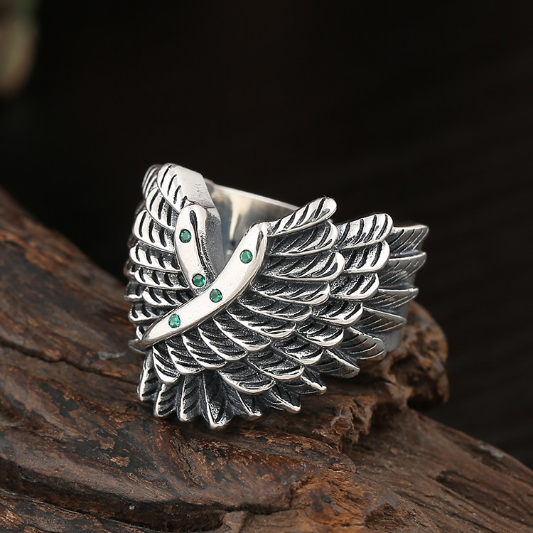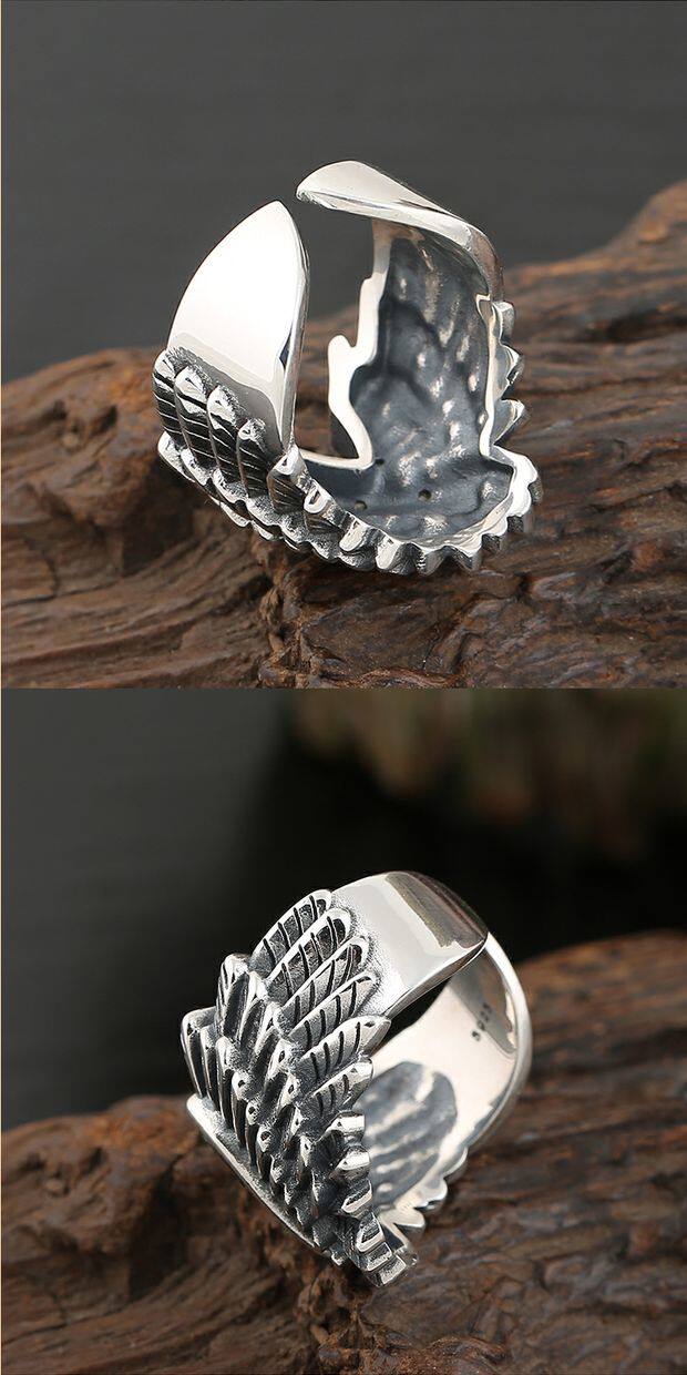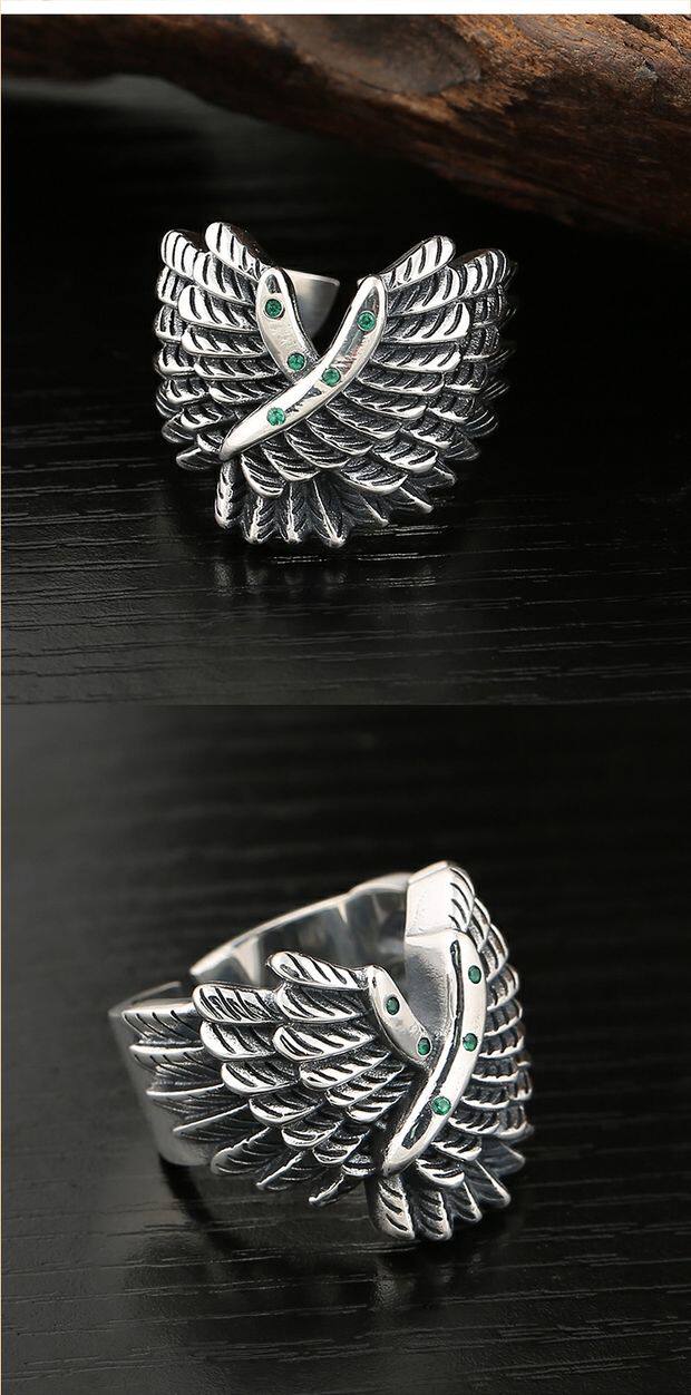 Ретро кольцо в стиле хип-хоп, крылья ангела, в стиле панк, серебро 925 пробы