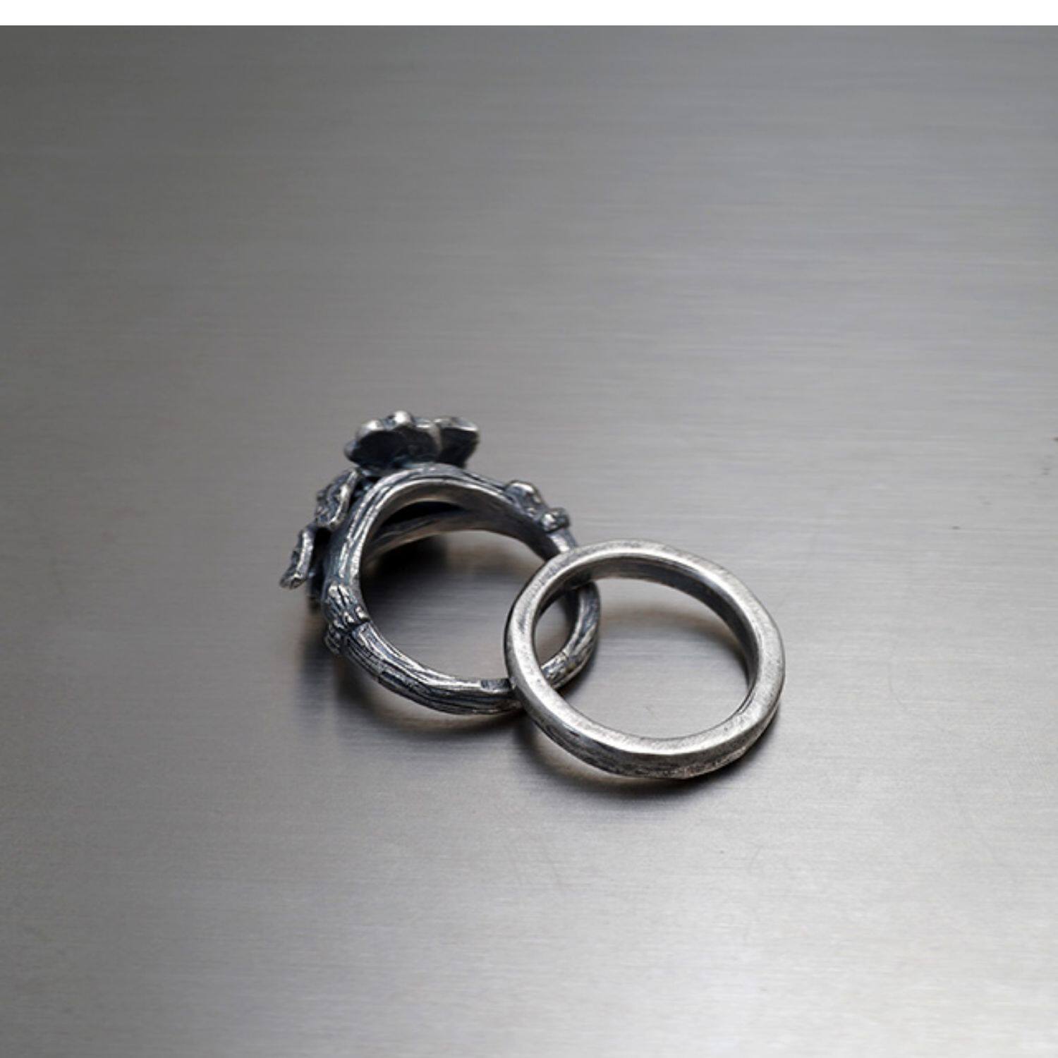Оригинальный комплект ручной работы, кольцо, серебро 925 пробы, в цветочек, серебро 925 пробы