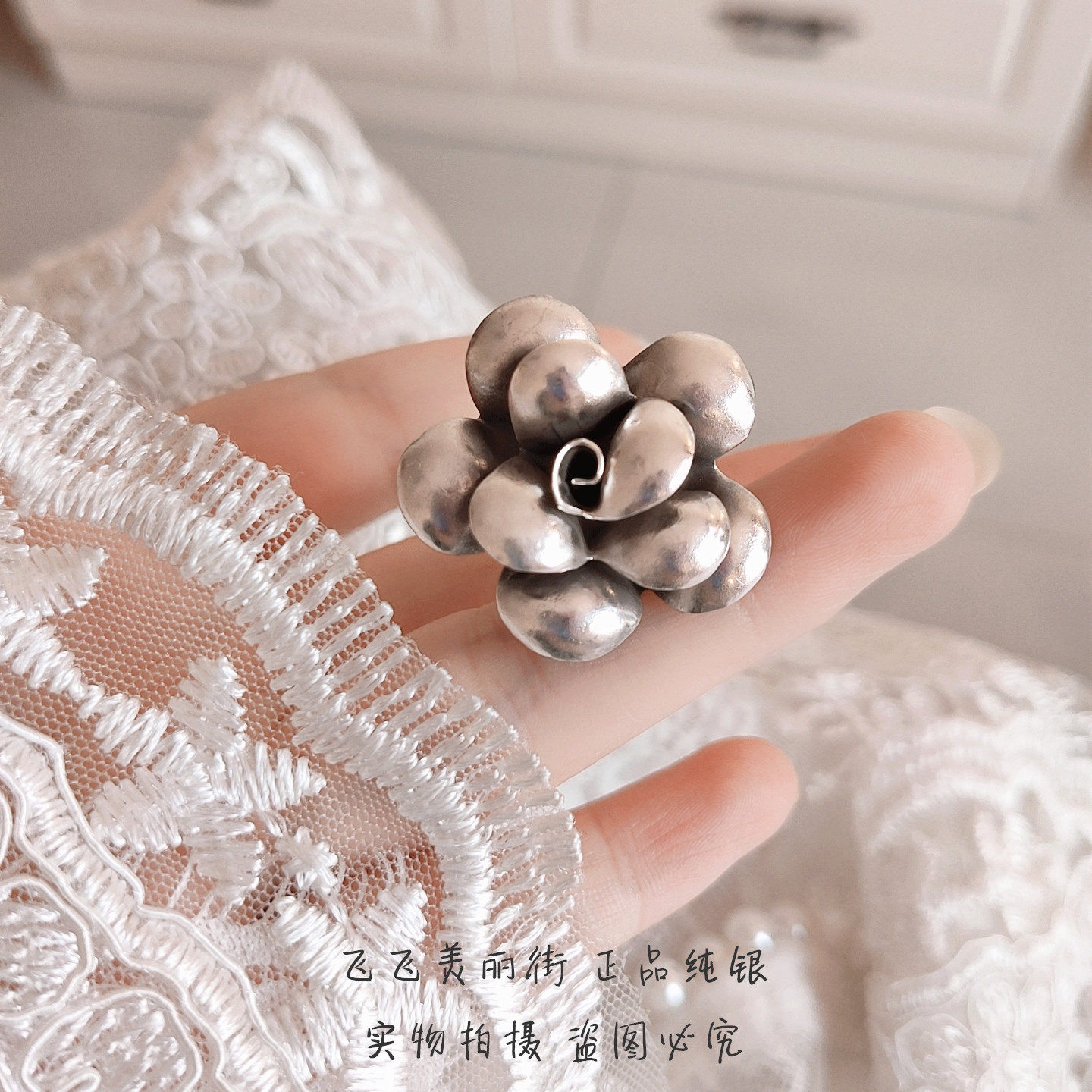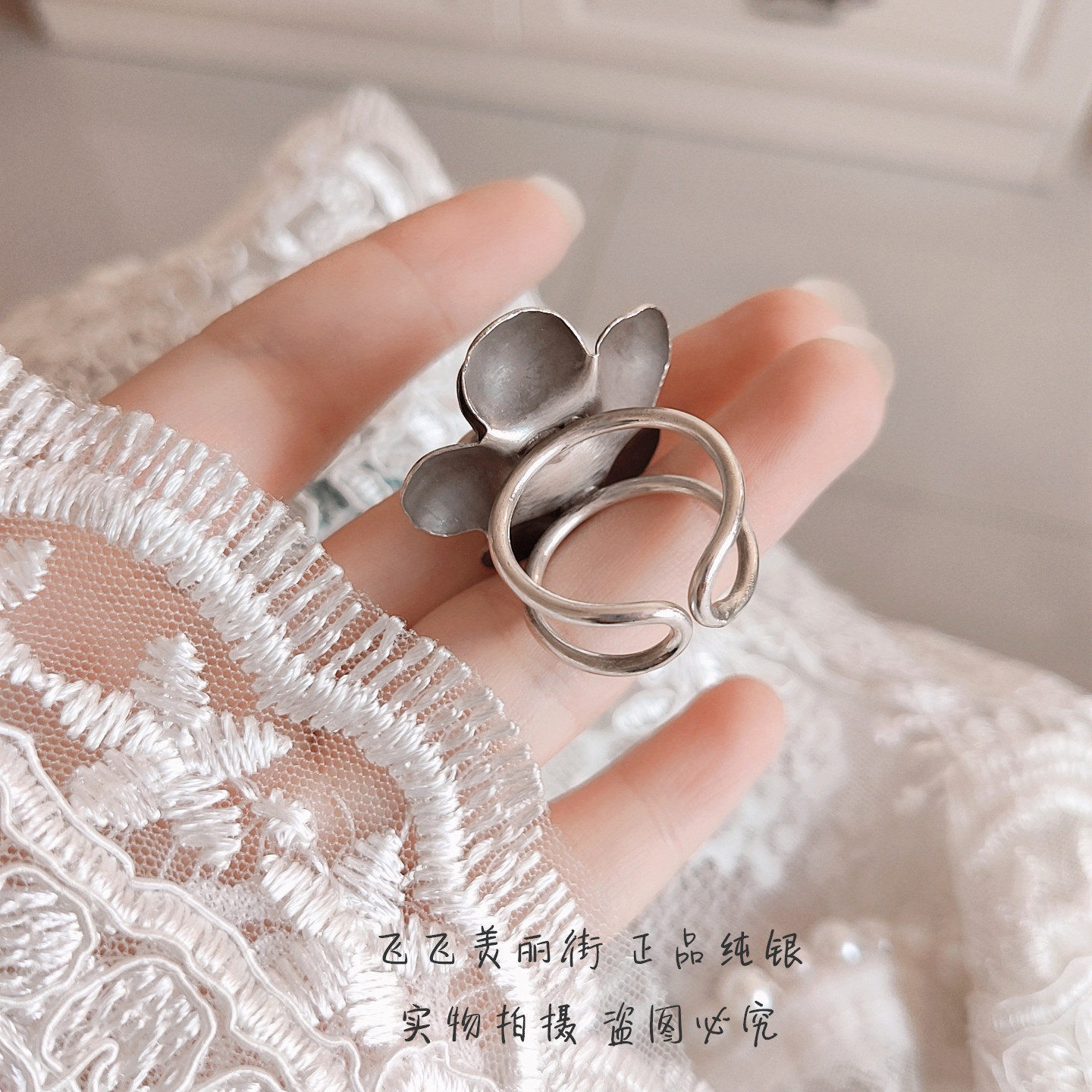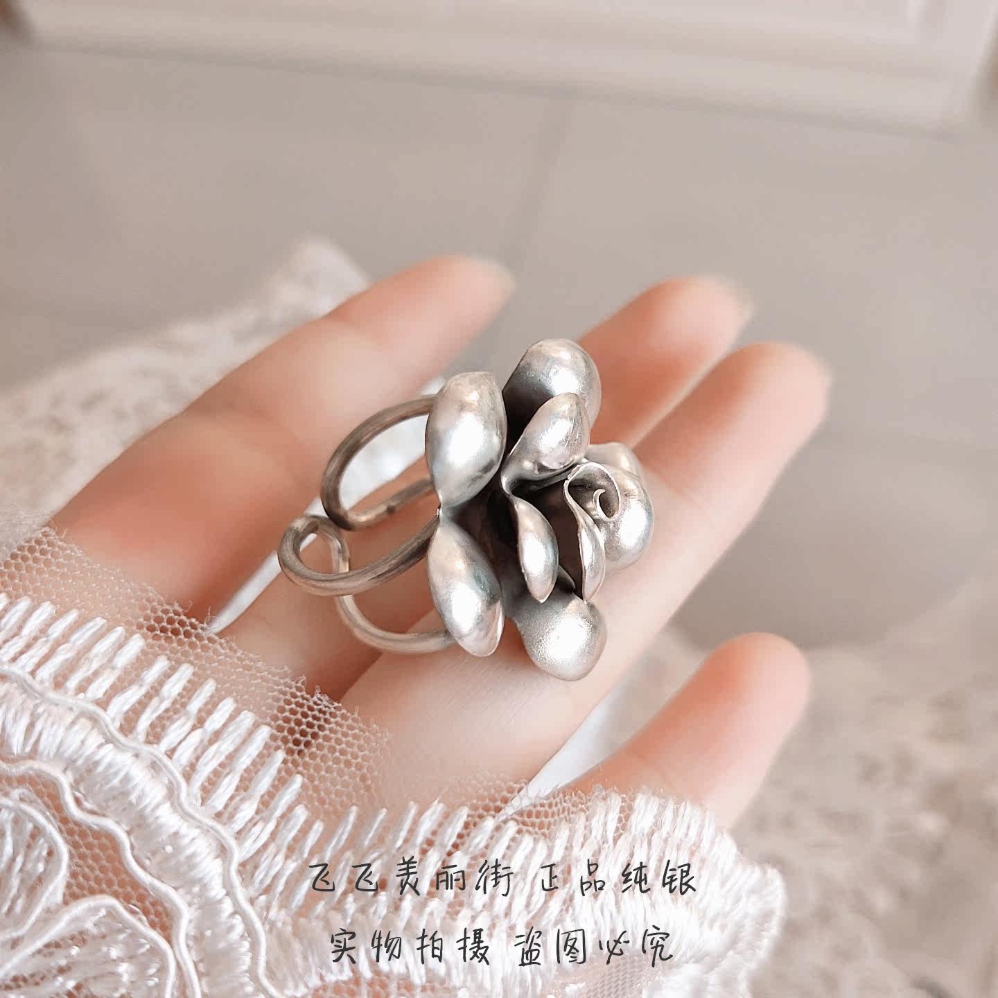 Импортное ретро кольцо ручной работы, серебро 925 пробы, Таиланд, в цветочек