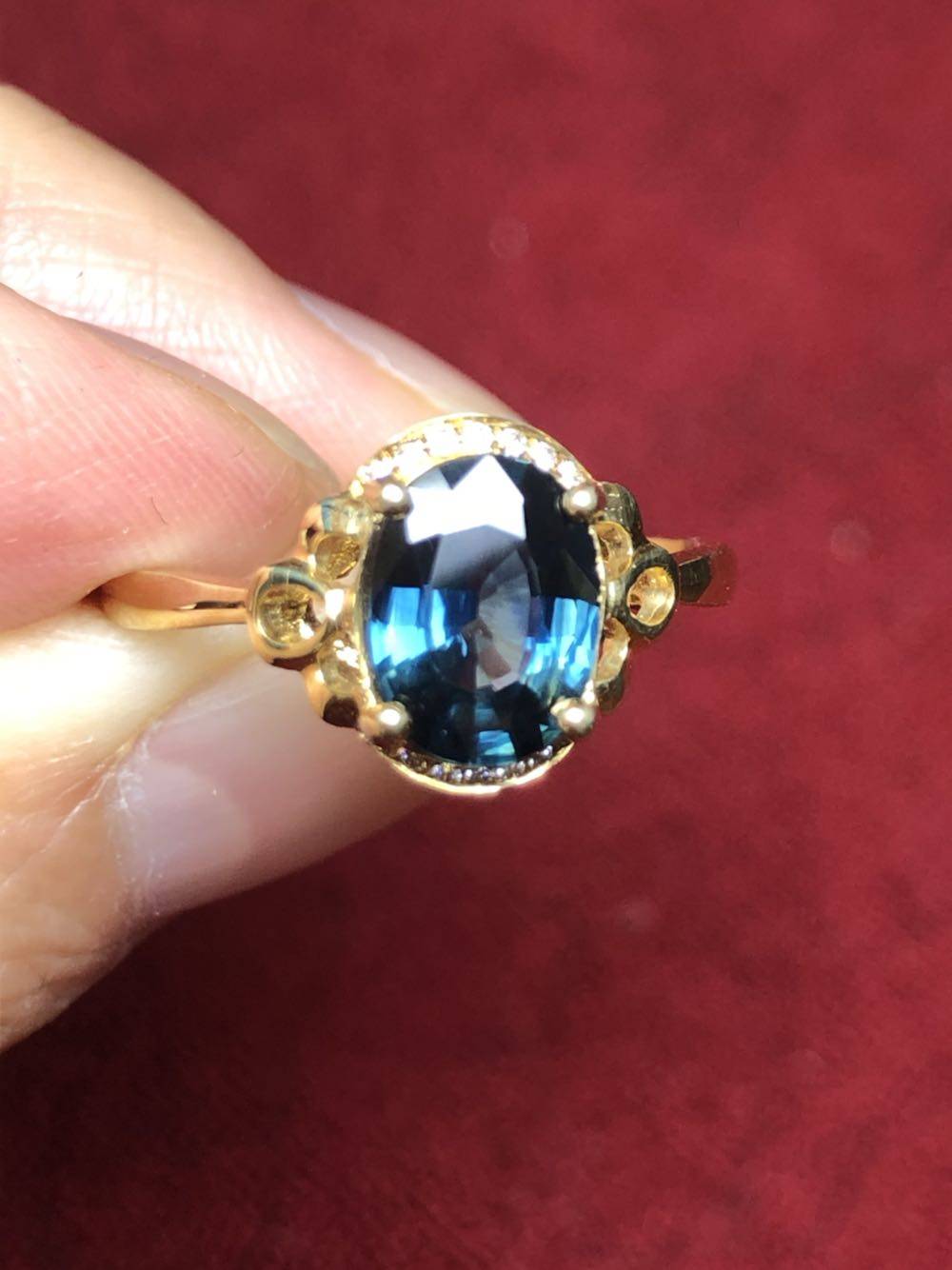 Золотое сапфировое качественное кольцо с камнем из нефрита, 18 карат, 1.5 карат, с драгоценным камнем