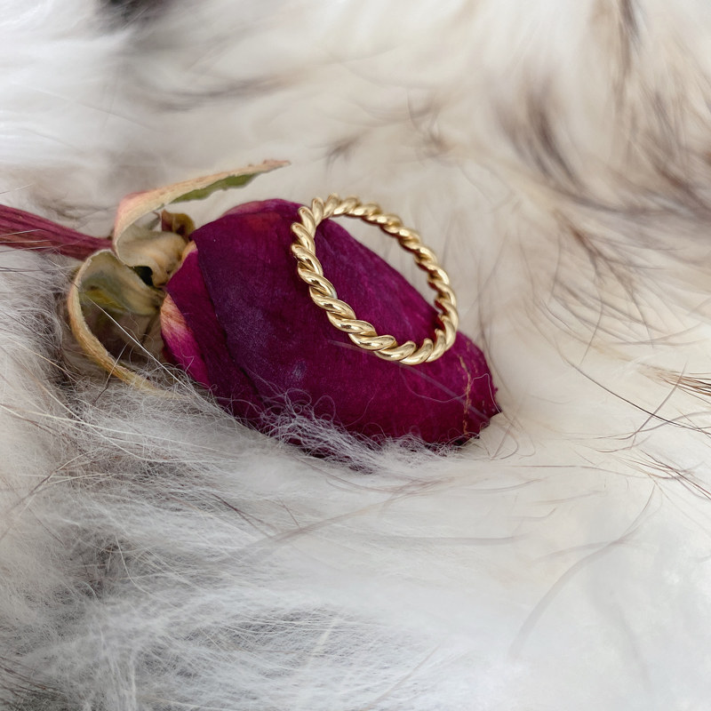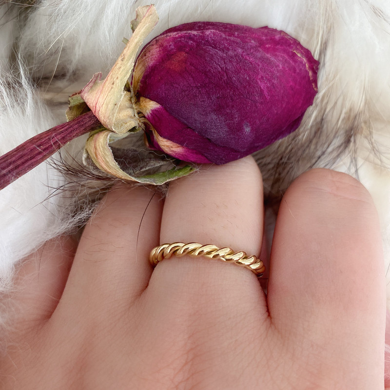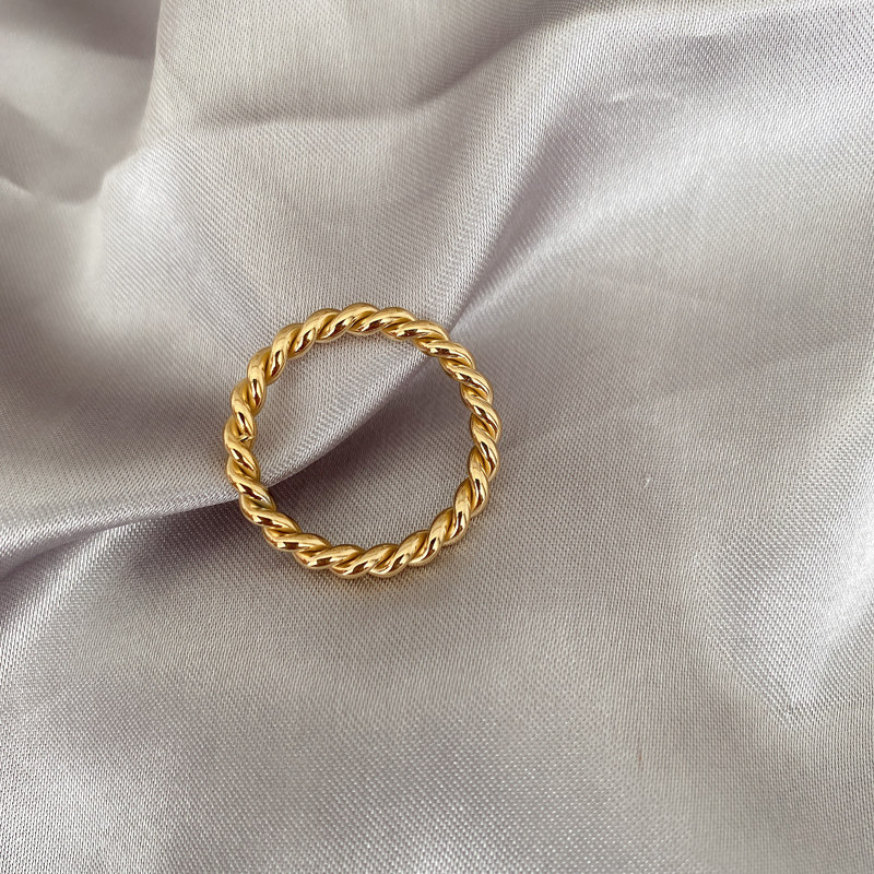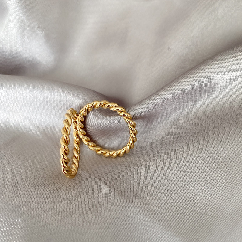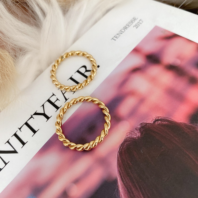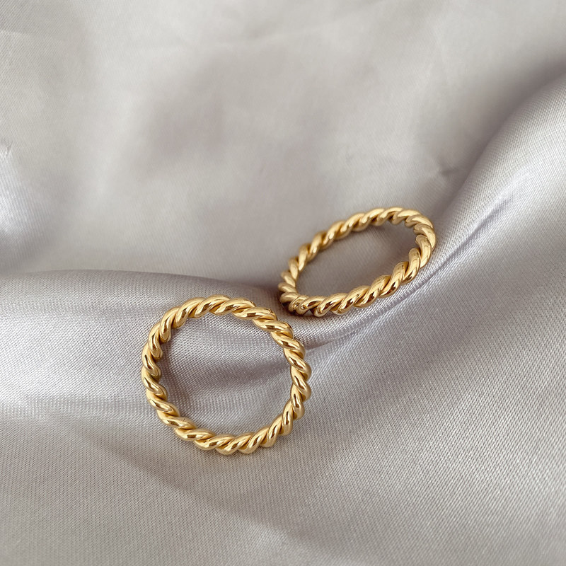 Tide, золотое ретро модное металлическое кольцо с косичкой, европейский стиль, простой и элегантный дизайн, на указательный палец