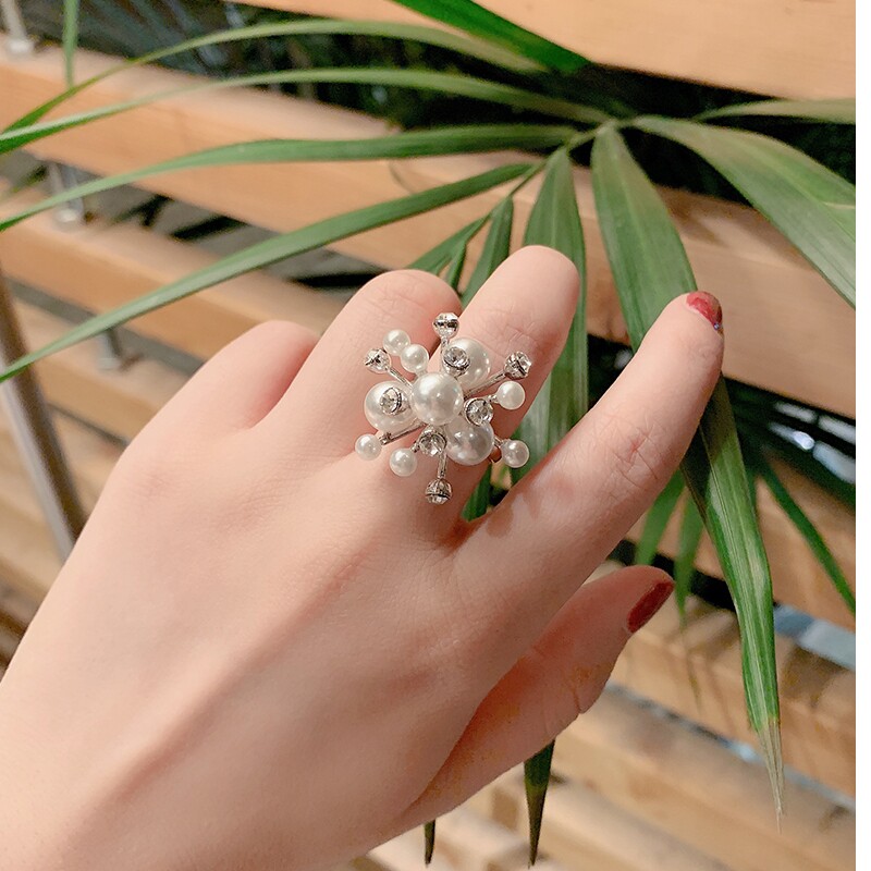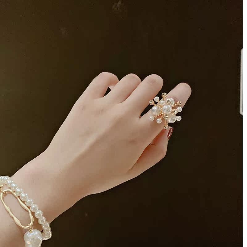 Дизайнерское обручальное кольцо из жемчуга, аксессуар, в корейском стиле, тренд сезона, на указательный палец